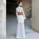 Elegant Mesh Deep V Plunge neck Pleated Slim Fit Dress