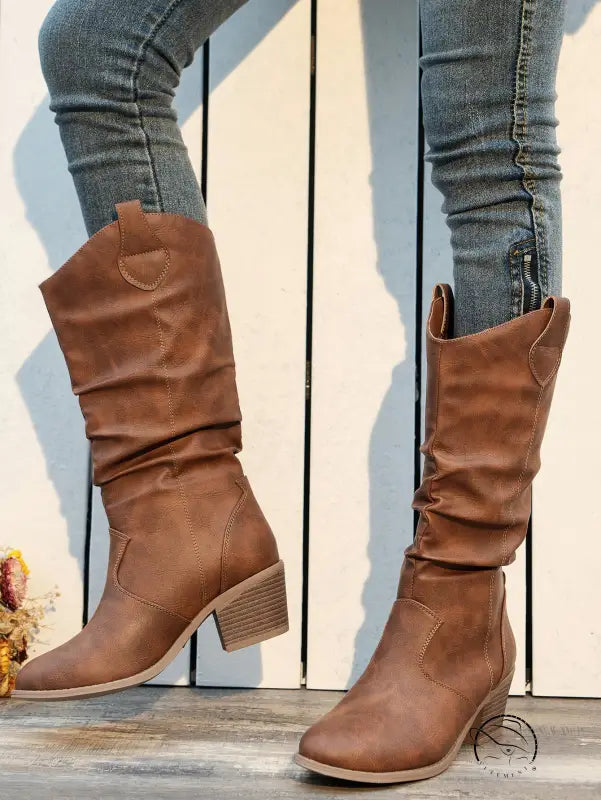 حذاء بكعب عالٍ وقصة مطوية وأصابع مستديرة
