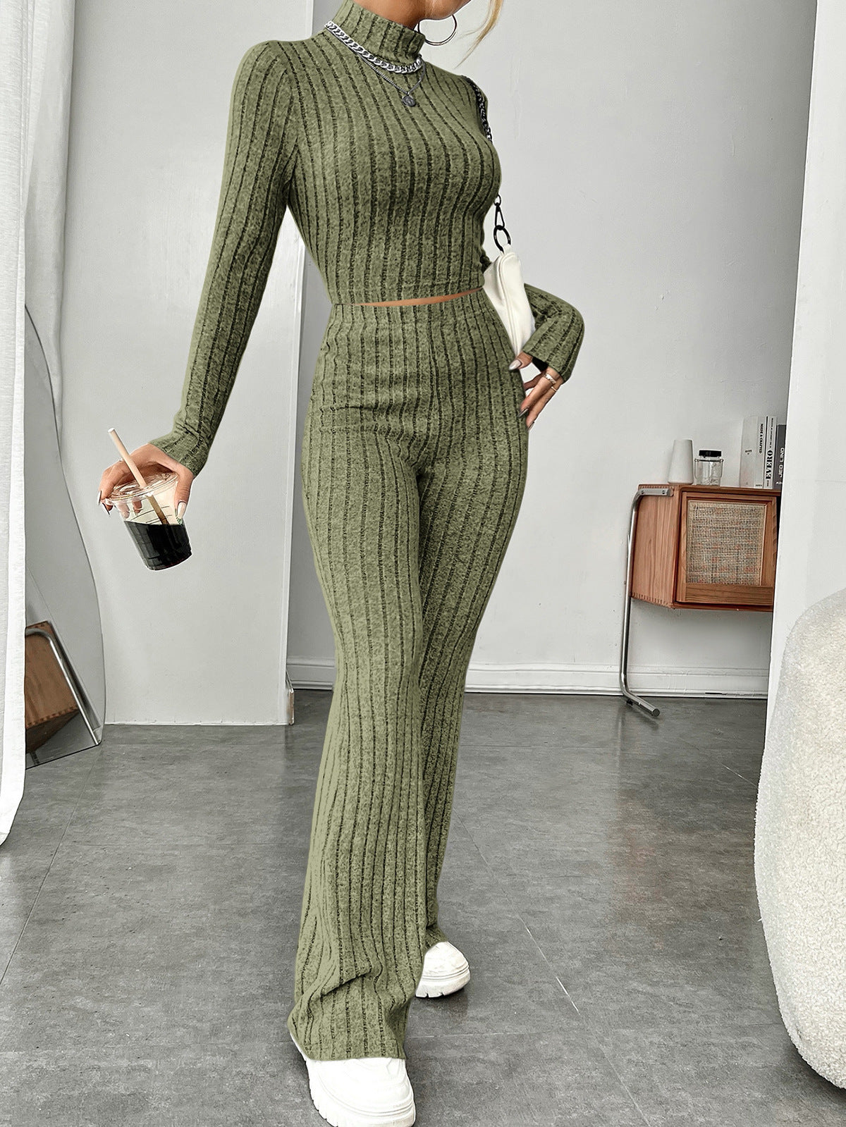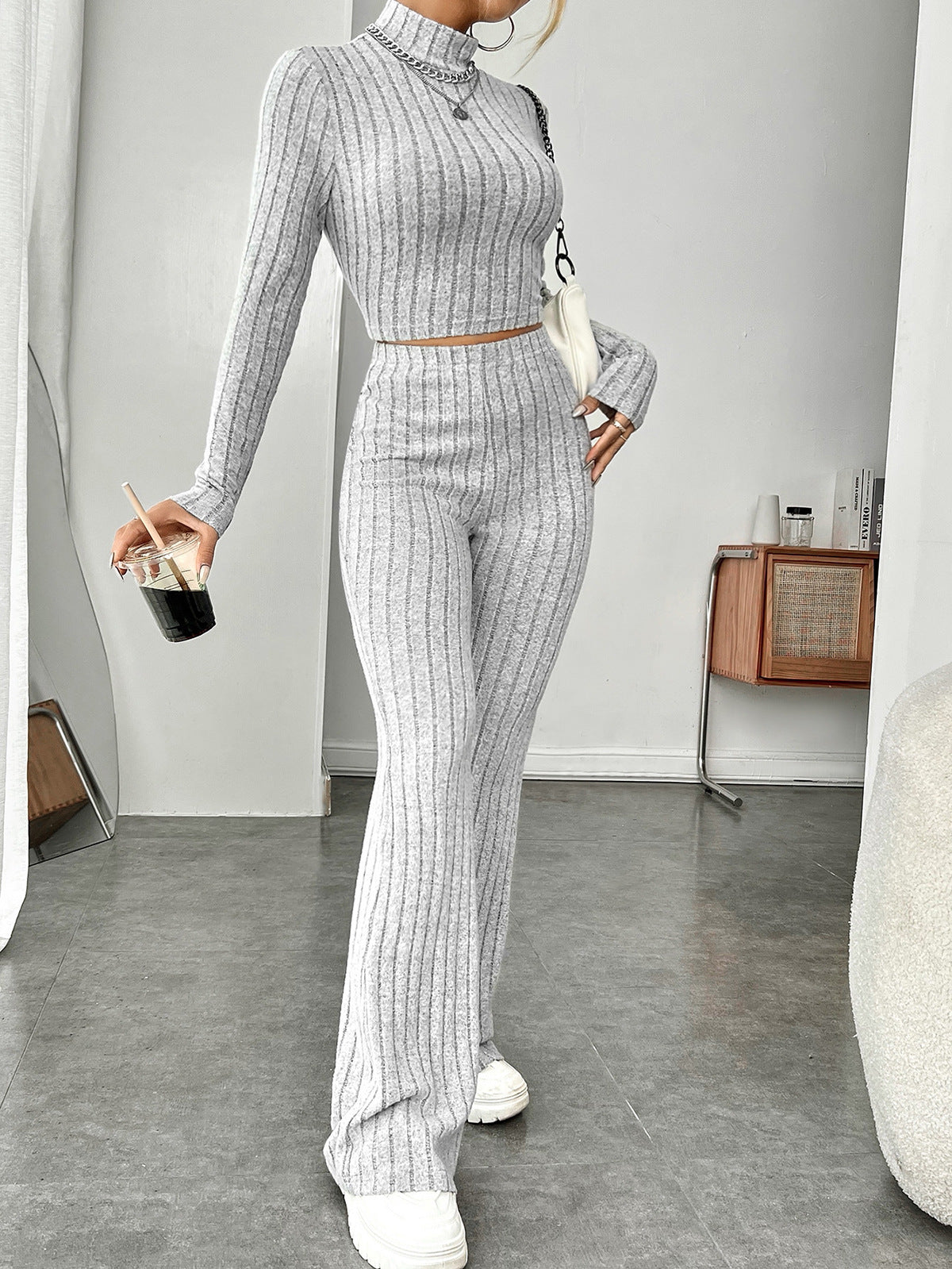 Half Turtleneck Knitting Long Sleeve Trousers Two Piece Sets