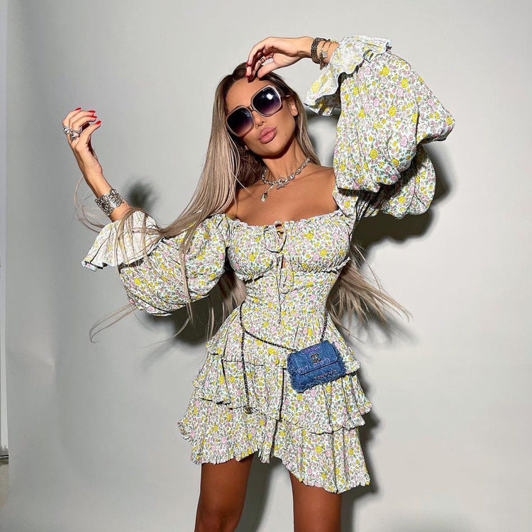 Beautiful Long Sleeve Tube Top Printed Floral Dress