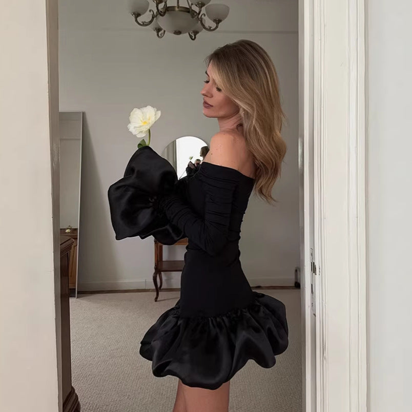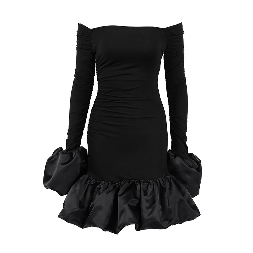 Elegant Black Knitted Slim Fit Long Sleeved Dress