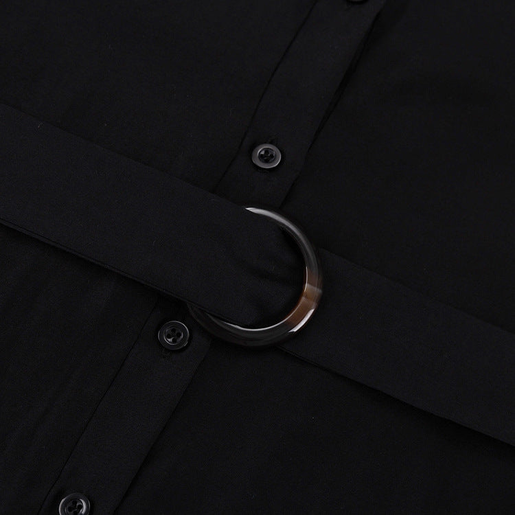 The Elegant Black Spring Polo Collar Dress combines a classic polo collar with a sleek black design, offering versatility for both casual and formal occasions. Its tailored fit flatters various body types, enhancing comfort and style. The garment is suitable for spring, making it a seasonal staple.