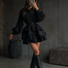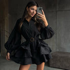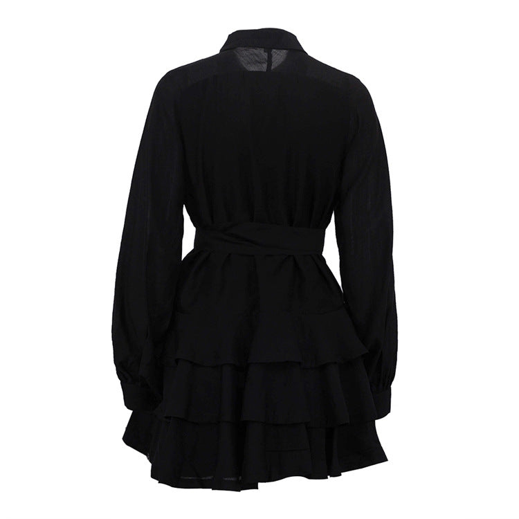 Elegant Black Spring Polo Collar Dress