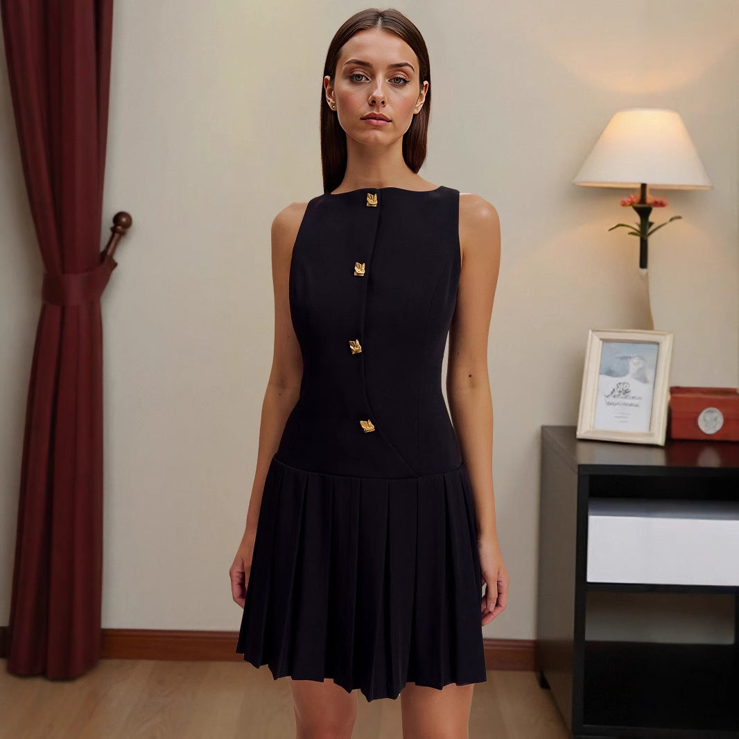 Elegant Wide Hem Pleated Waist Tight Short Dress