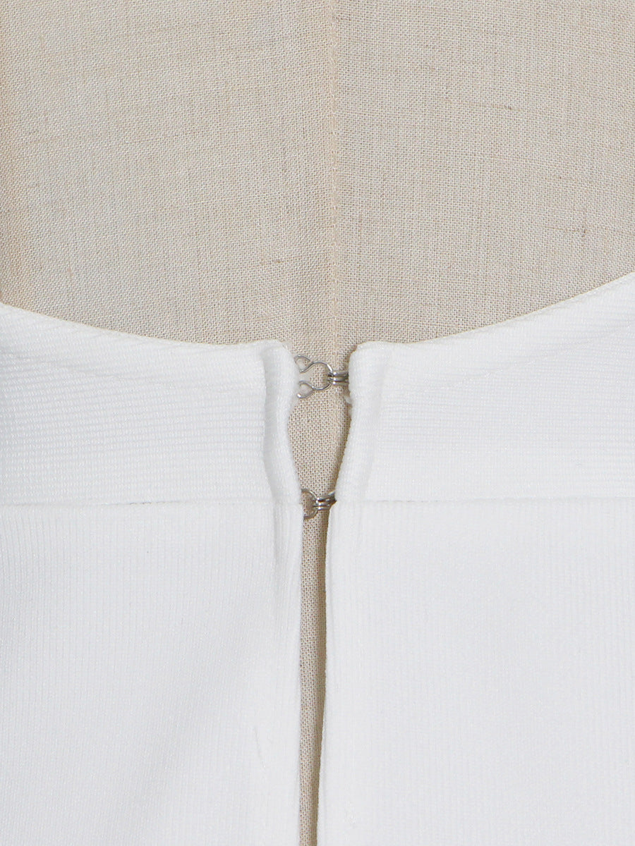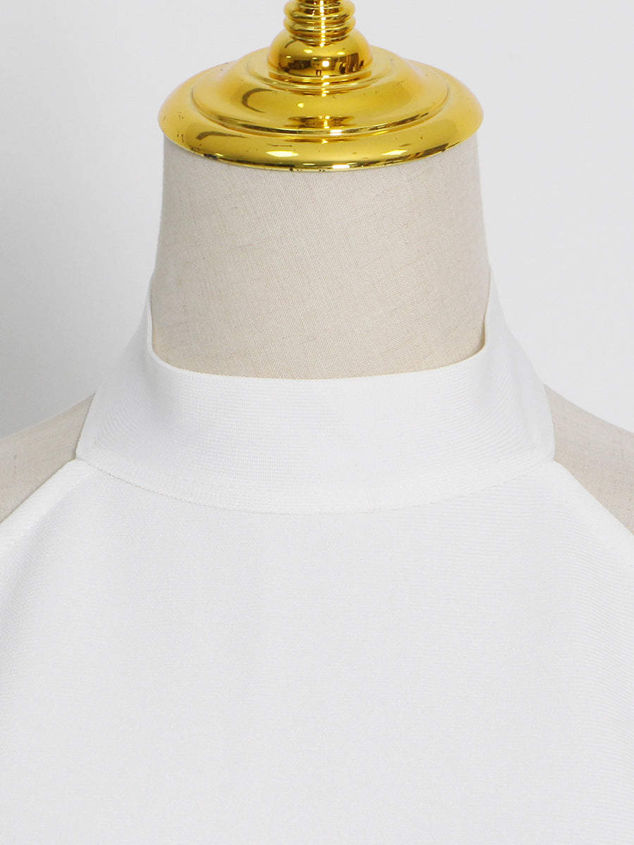 طقم مكون من قطعتين، رقبة دائرية، بدون أكمام، بألوان متباينة، بدون ظهر، بتصميم غير متساوي يعمل على النحافة