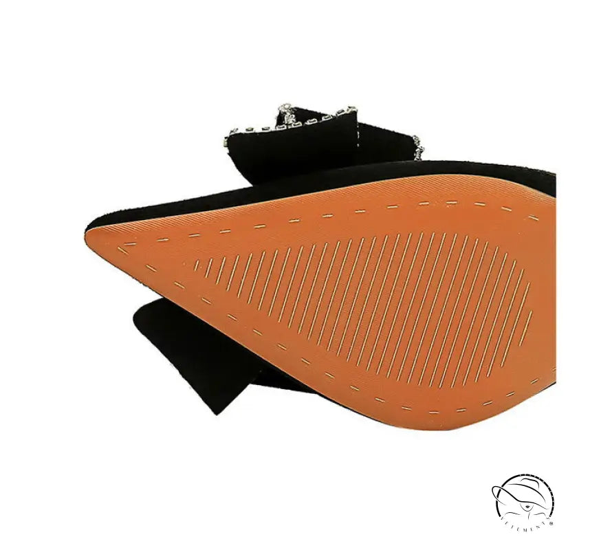 حذاء بكعب عالٍ مزين بفيونكة من حجر الراين ومقدمة مدببة وفم ضحل
