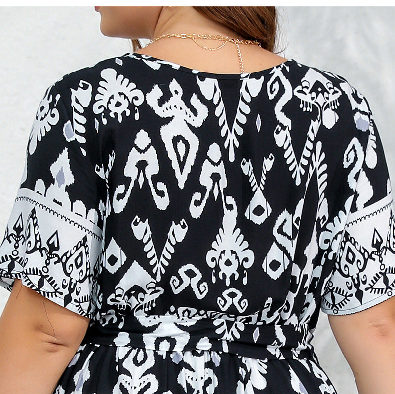 فستان بحجم زائد أنيق ورشيق مع خصر مرن بتصميم على شكل حرف V