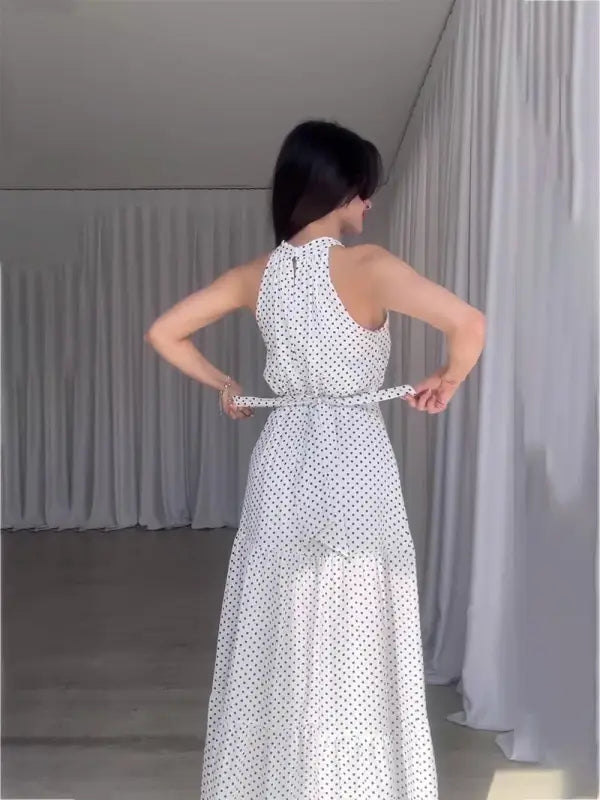 فستان ماكسي بنقشة البولكا دوت الأنيق - لانغري فاشن ملابس موضة للصيف