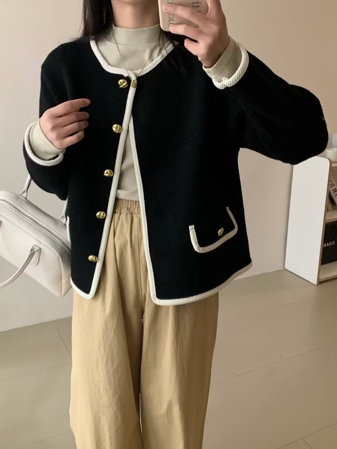 Classic Binding Korean Velvet Knitted Coat