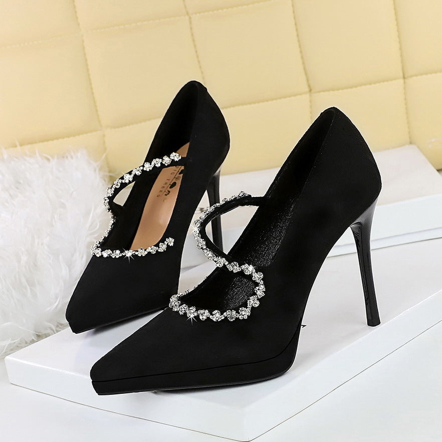 Cocktail Waterproof Platform Rhinestone Ankle Strap High Heel Pumps