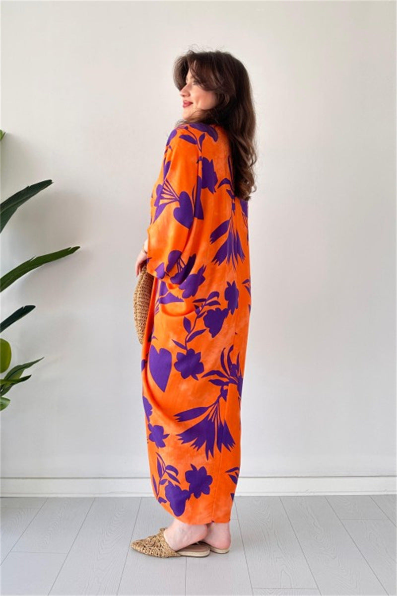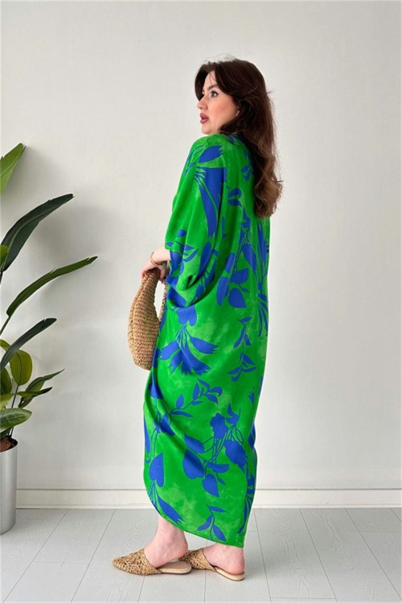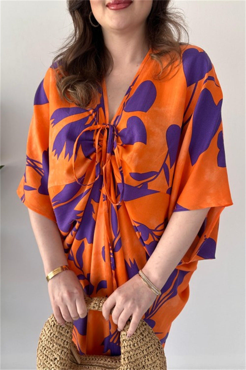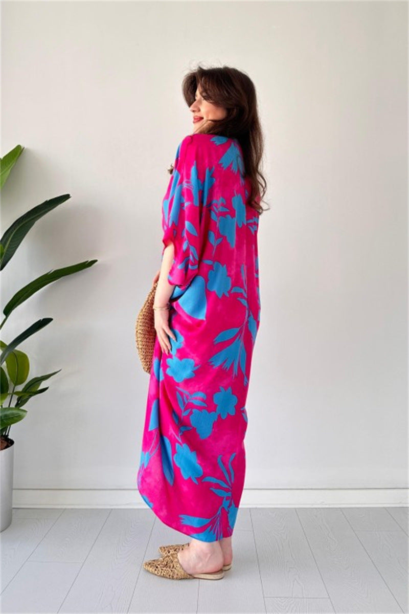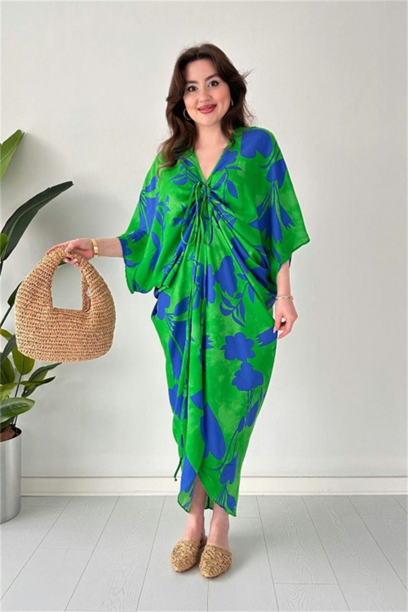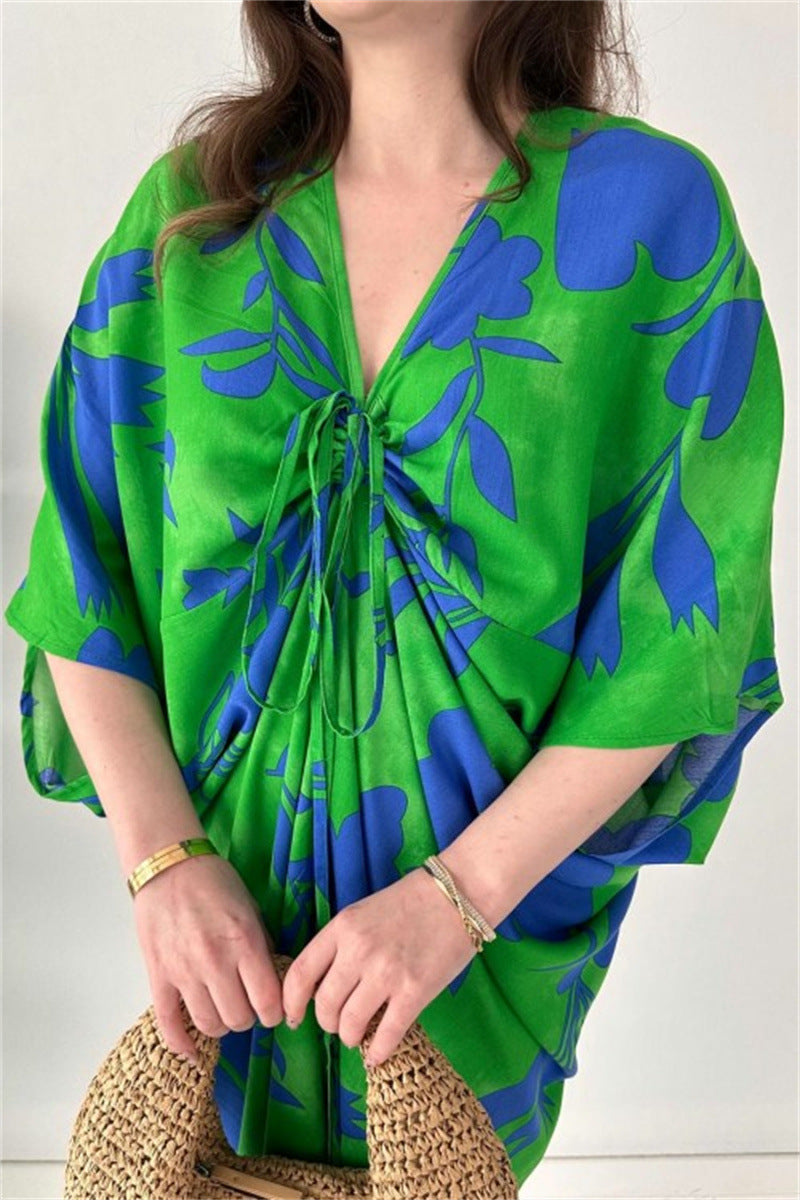 فستان نسائي غير متناسق ذو أكمام فضفاضة وقصة عصرية مع طباعة وحبل شد