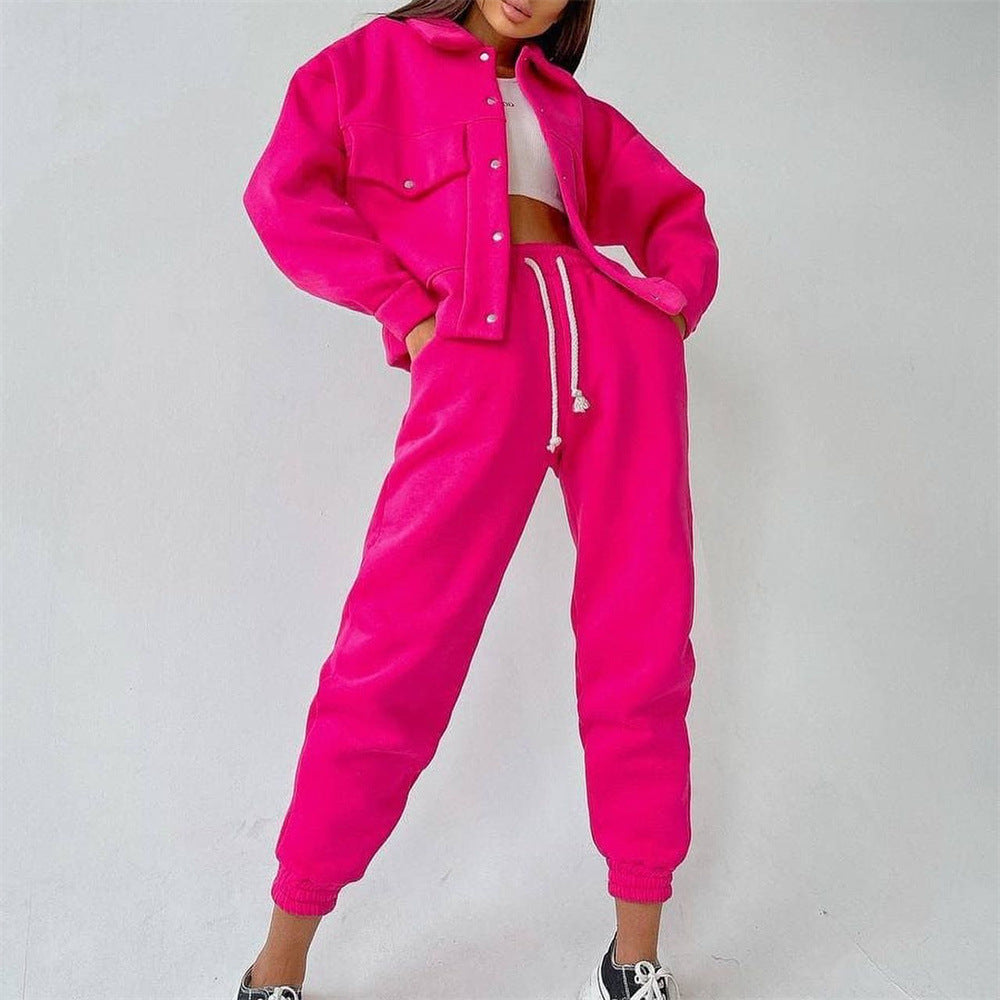 طقم مكون من قطعتين: بنطلون كاجوال، معطف، سويت شيرت، بأكمام طويلة