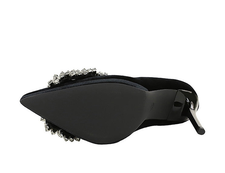 حذاء بكعب عالٍ مقاوم للماء مع فيونكة من حجر الراين