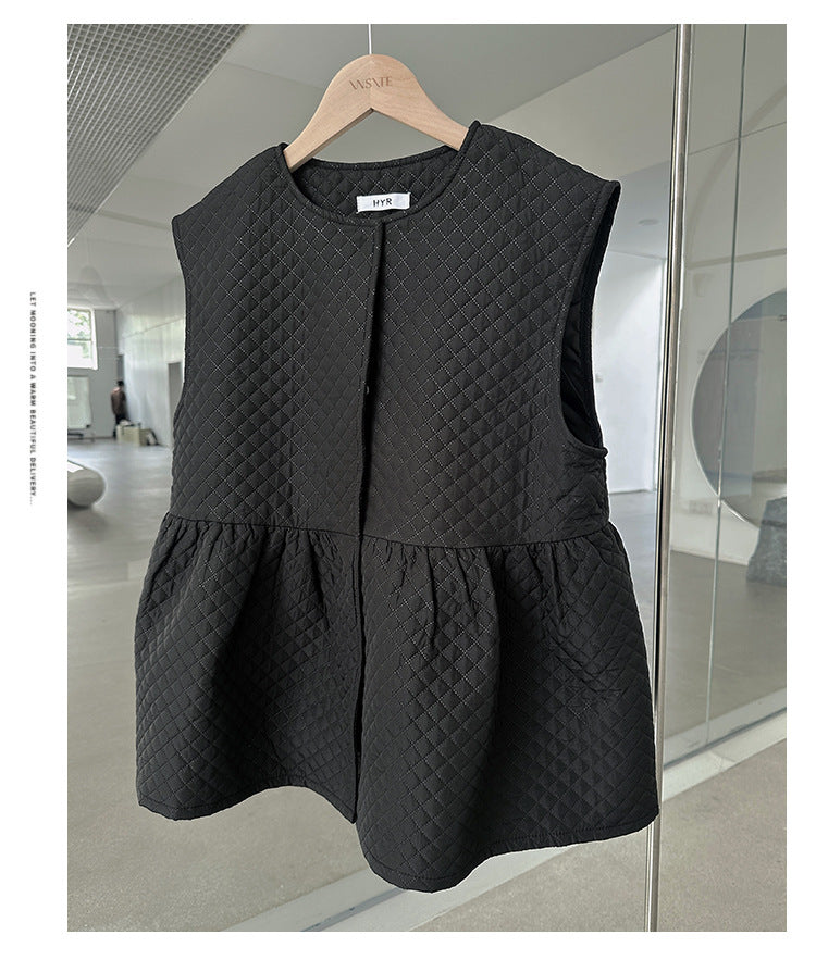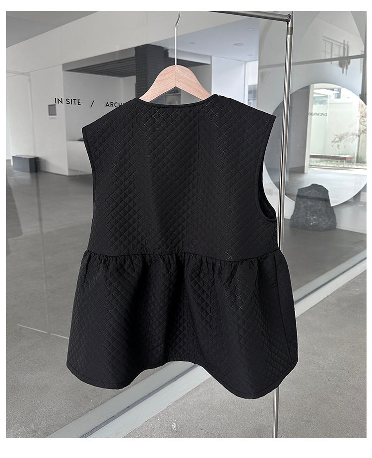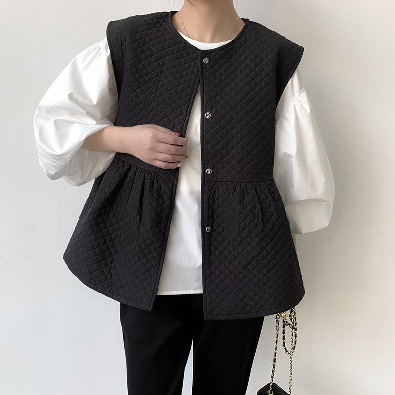 سترة سوداء من القطن بتصميم كشكش ورقبة دائرية تناسب جميع الأذواق لفصل الخريف والشتاء