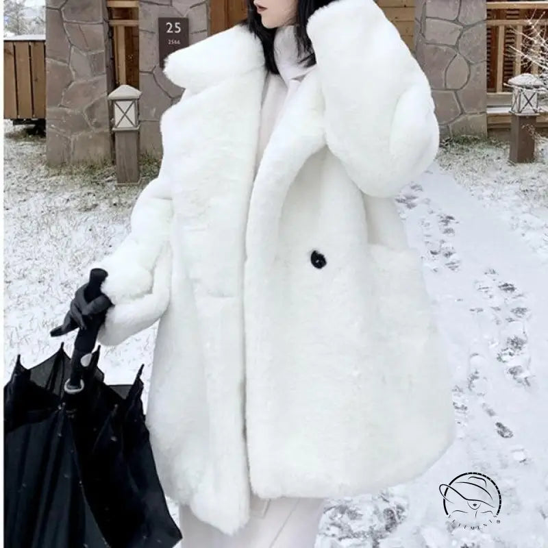 معطف كوري من الفرو الصناعي الفضفاض
