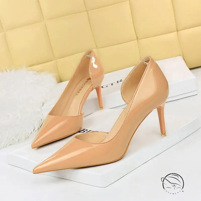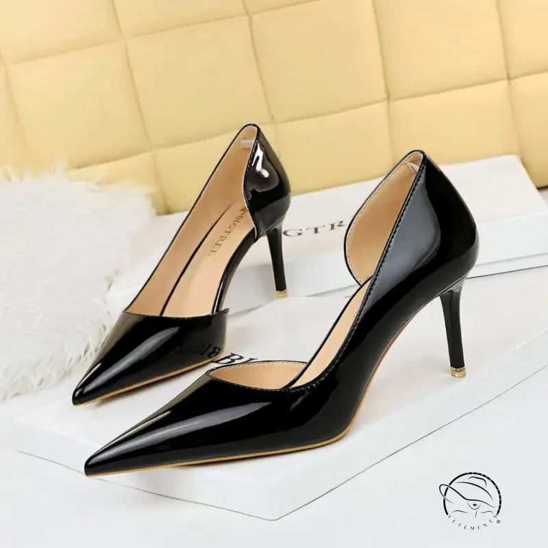 حذاء بكعب عالٍ من الجلد اللامع اللامع مع فتحة جانبية