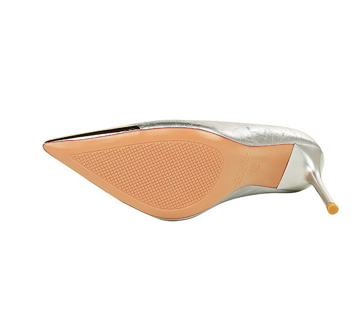 حذاء بكعب عالٍ مزخرف بطرف معدني