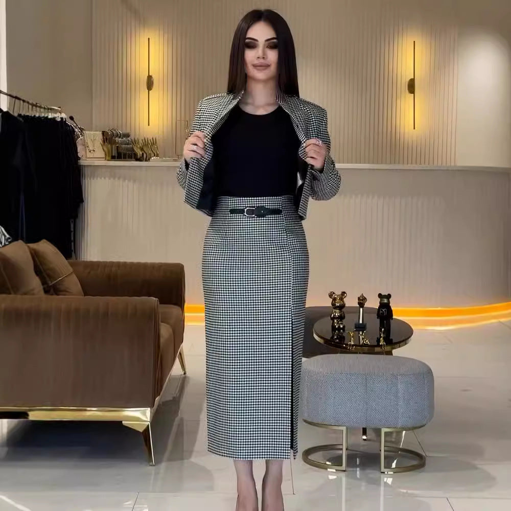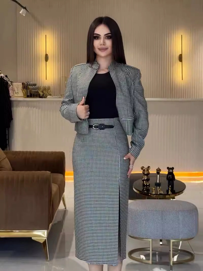 طقم مكون من قطعتين تنورة طويلة الأكمام للمكتب