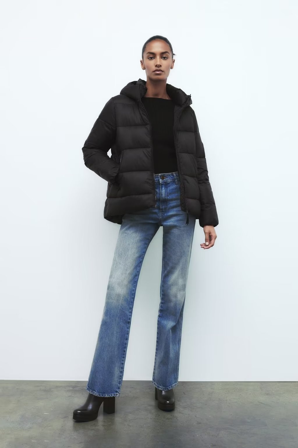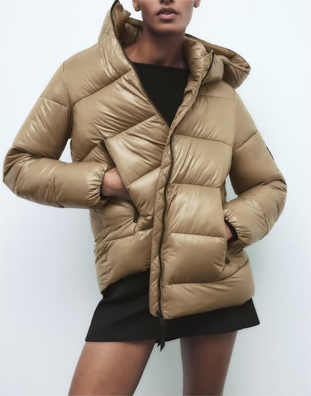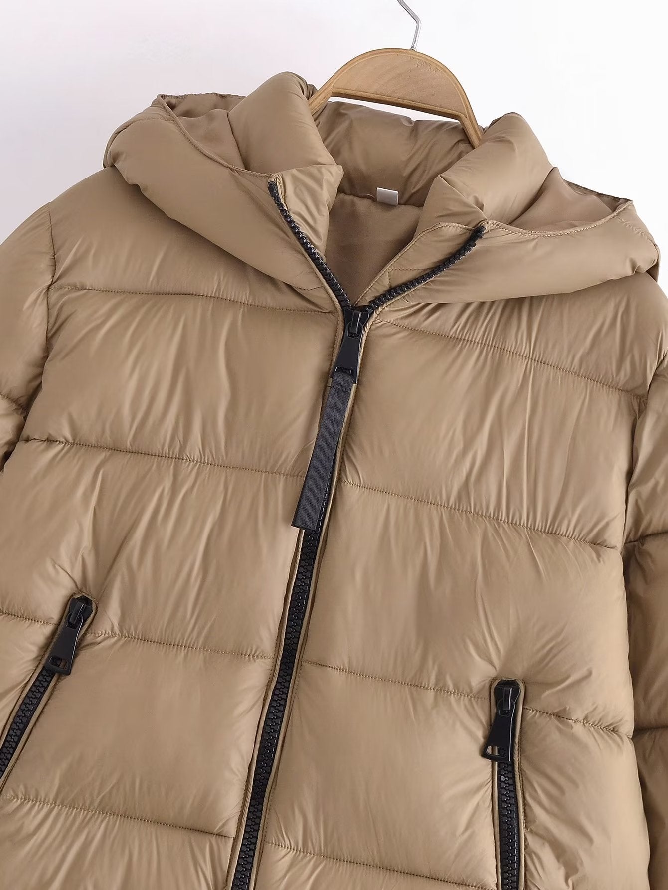 سترة مبطنة من القطن بغطاء رأس وسحاب