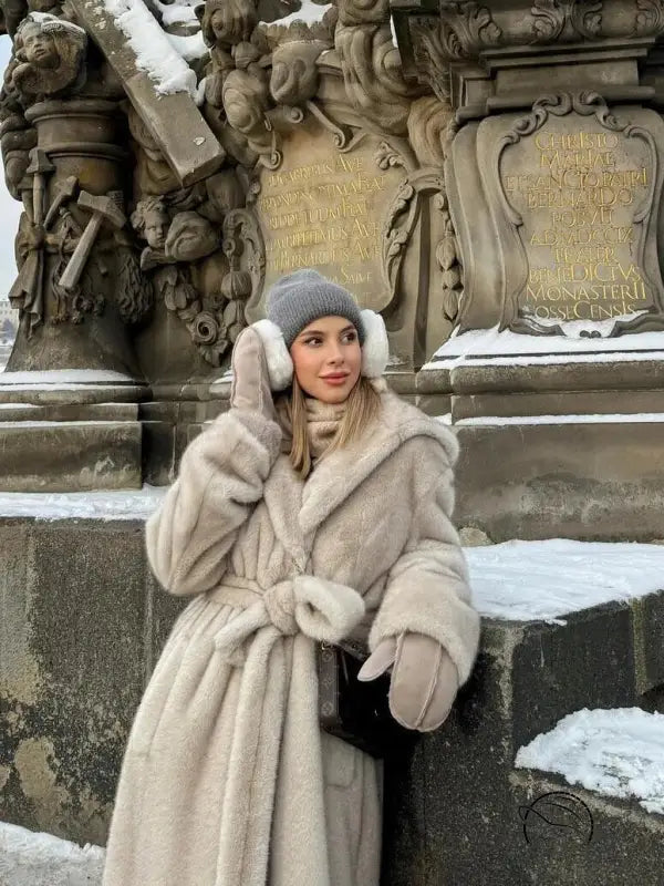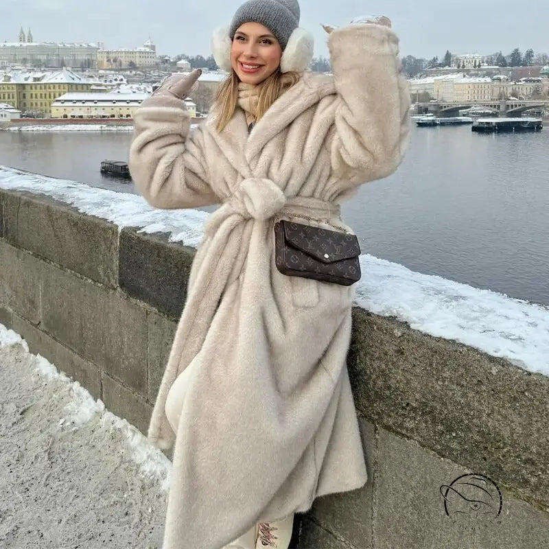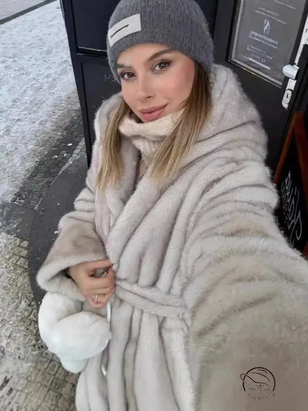 معطف فرو ناعم صديق للبيئة بغطاء للرأس