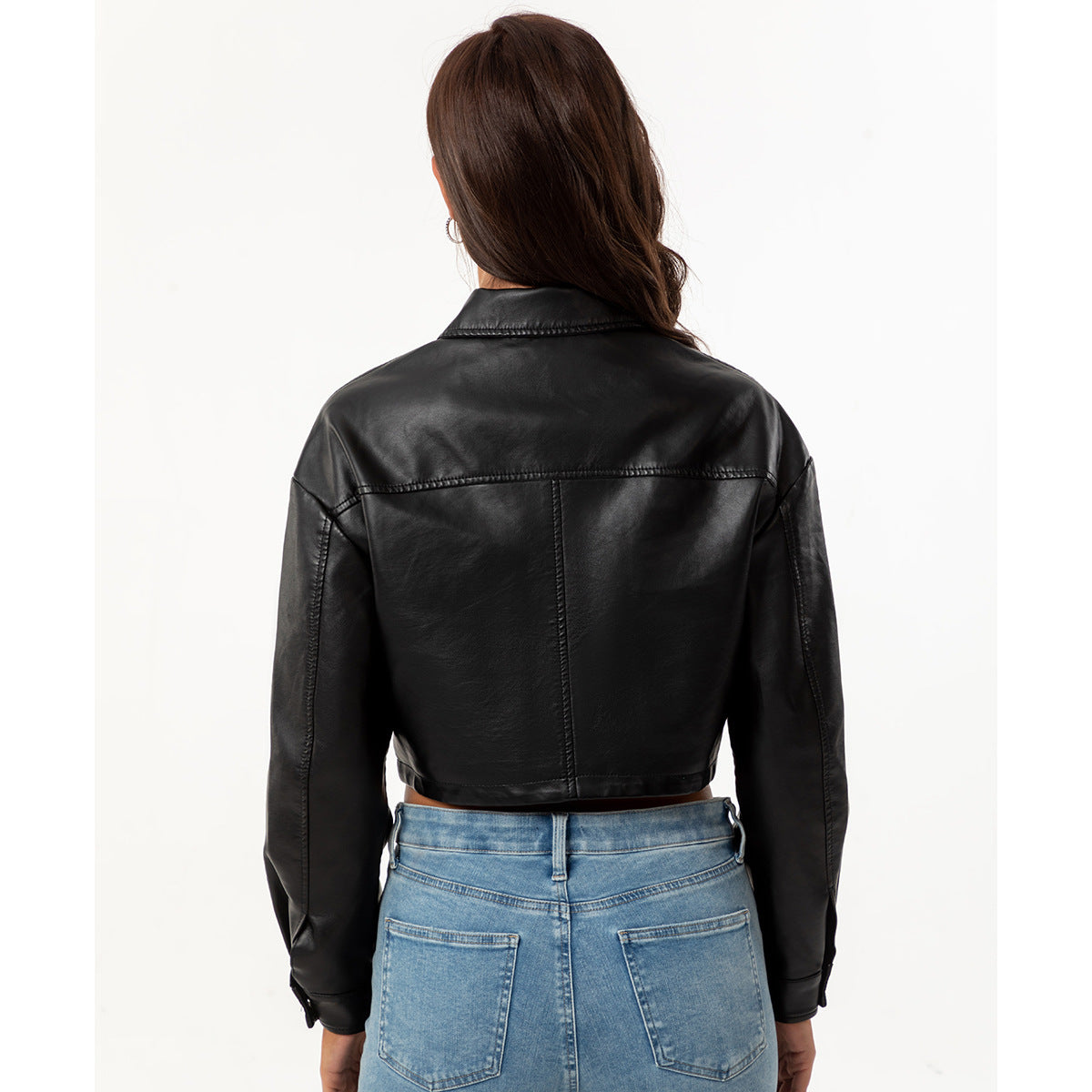 سترة جلدية قصيرة فضفاضة كاجوال