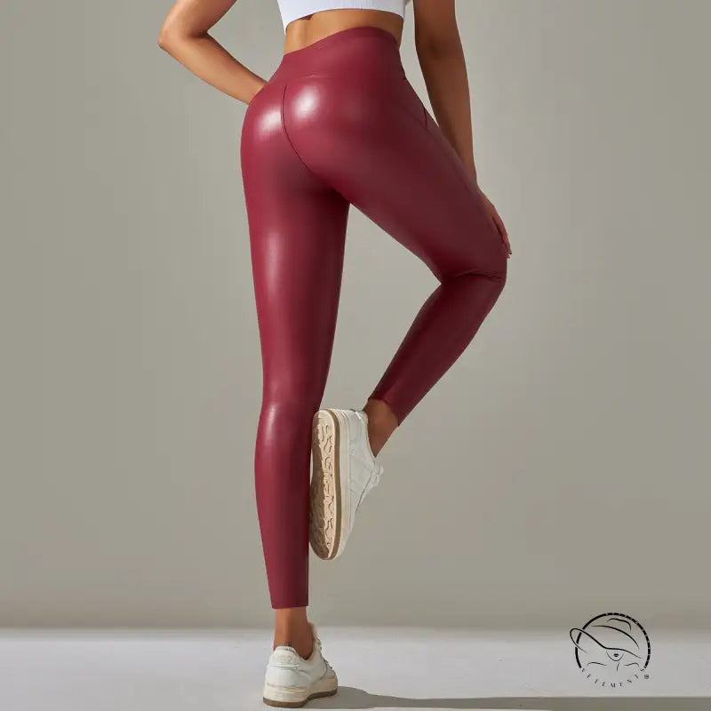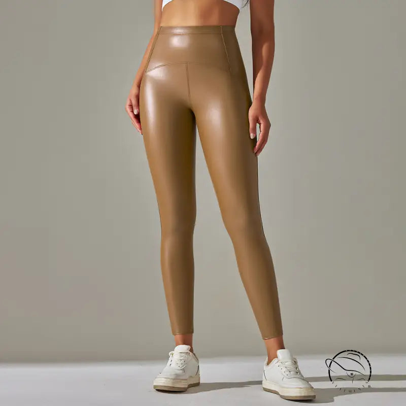 بنطال يوغا من الجلد الصناعي