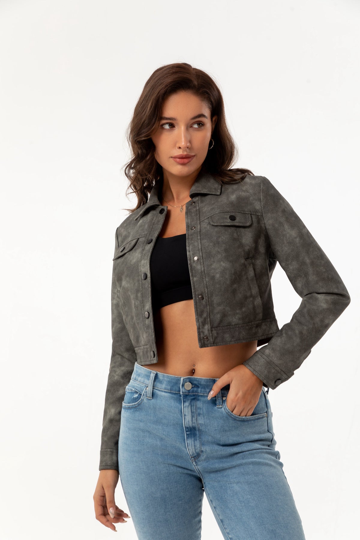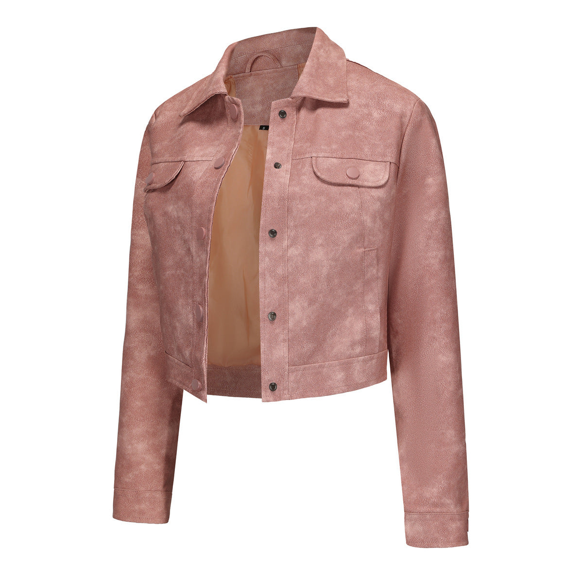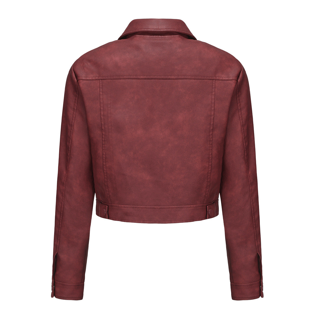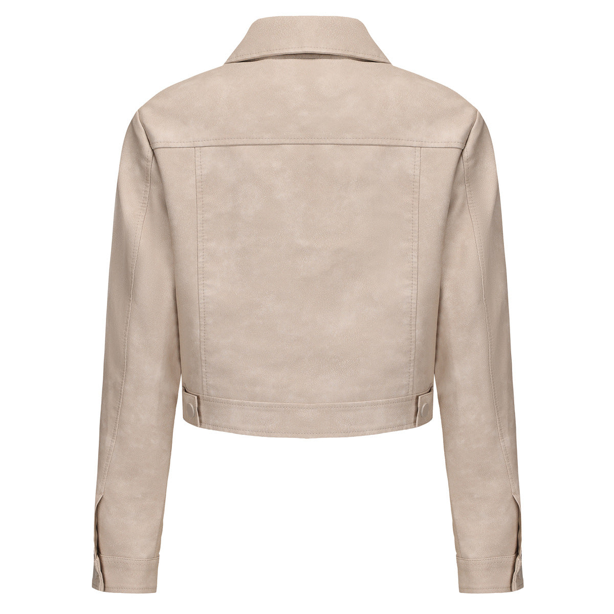 معطف جلد رقيق للنساء بموسم الربيع والخريف، متعدد الجيوب، سترة غير رسمية، معطف يومي شائع