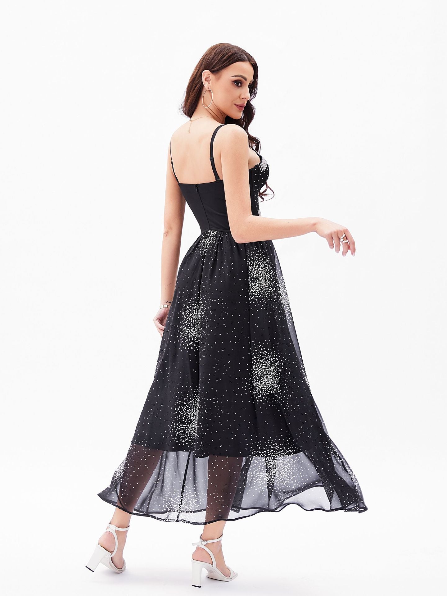 فستان كورسيه قطعة واحدة من الدانتيل الجميل مع ظهر مفتوح وطبقات مزخرفة بنقاط بولكا