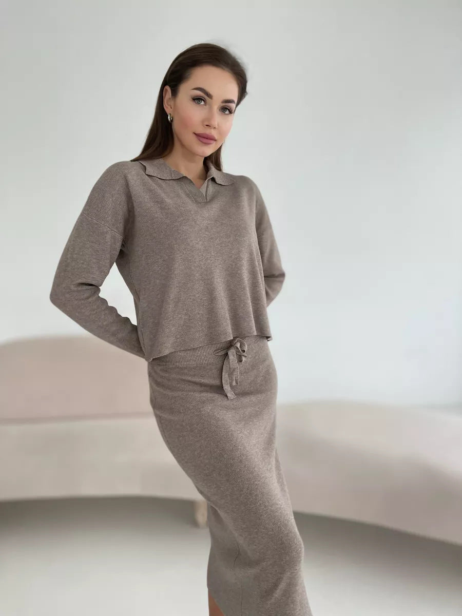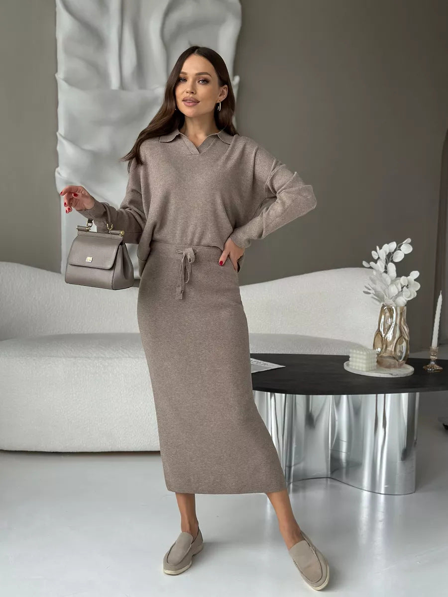 مجموعة تنورة برباط من السترات المنفصلة الناعمة المحبوكة في الشتاء