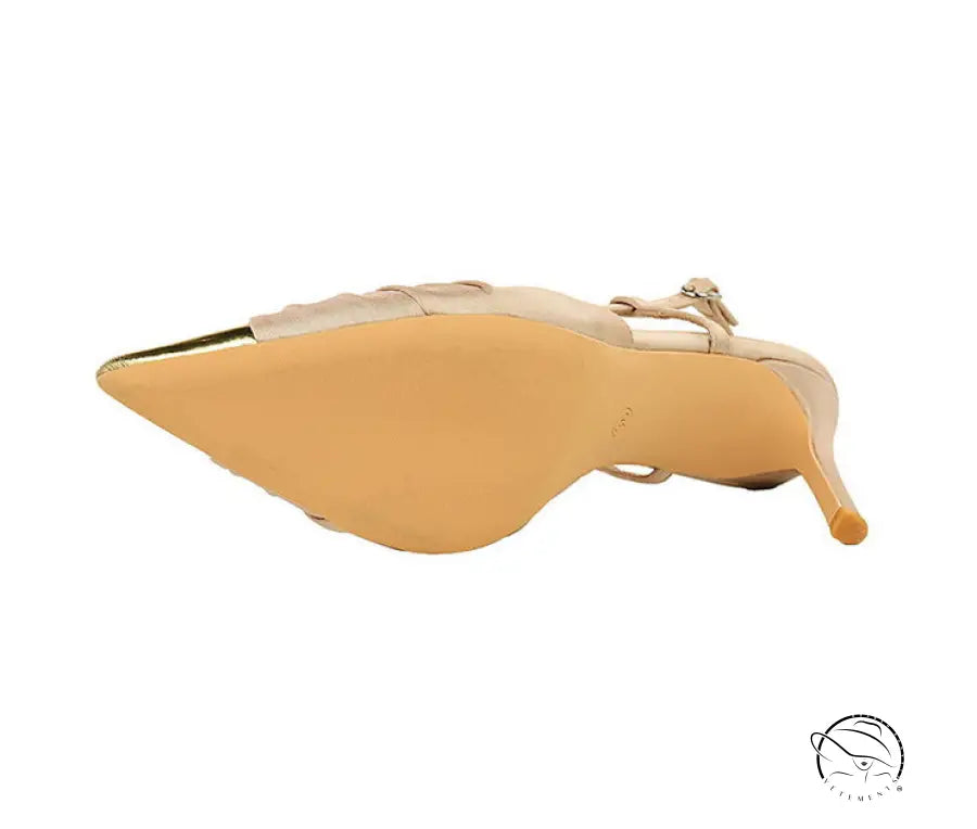 حذاء بكعب عالٍ مدبب ومزين بفيونكة ساتان ملونة