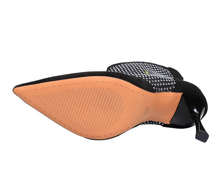 Stitching Mesh Rhinestone Stiletto Pointed Toe Thin Boots
