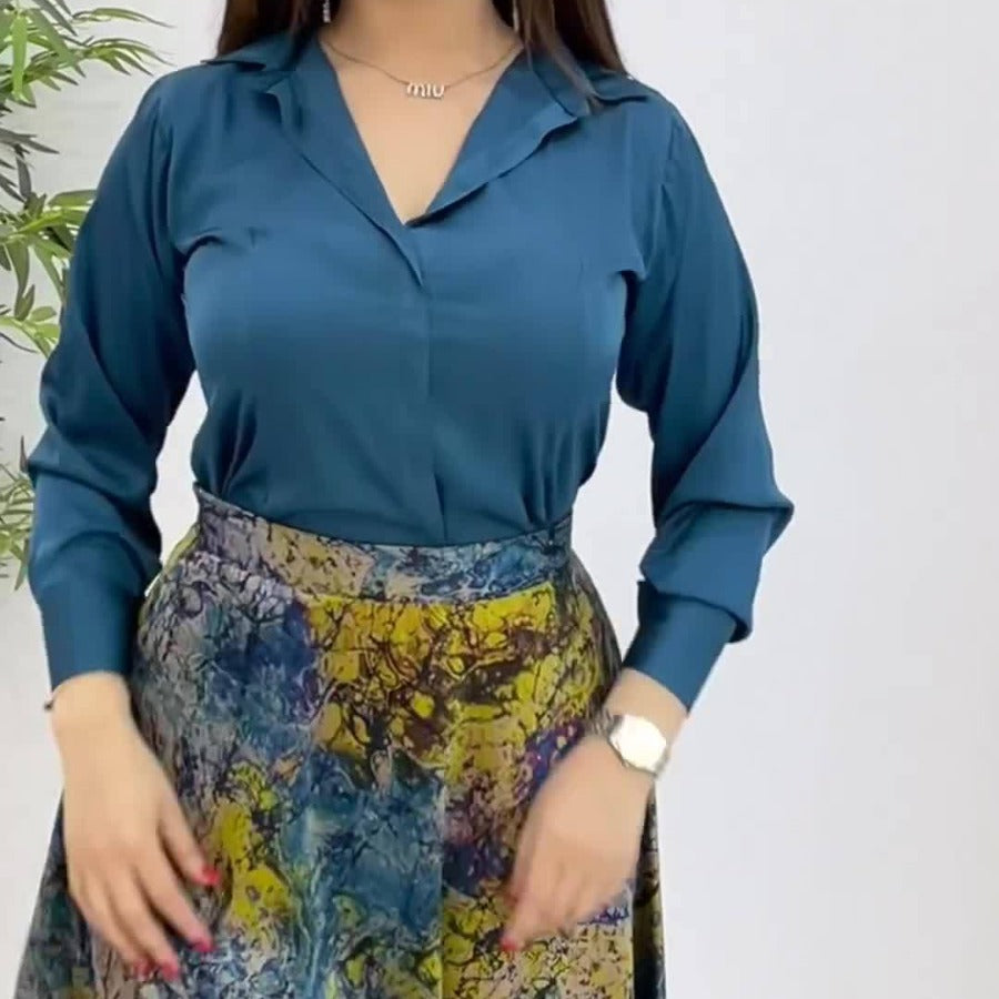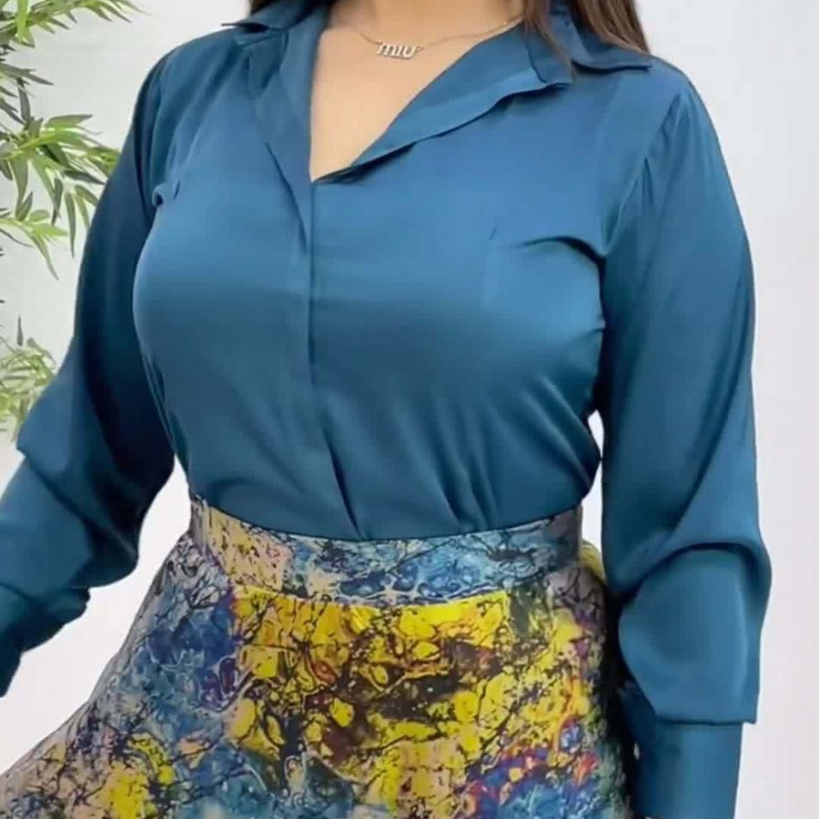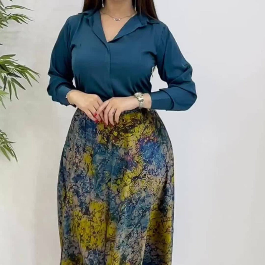 طقم تنورة مطبوعة رقمياً من لون ساطع غير لامع