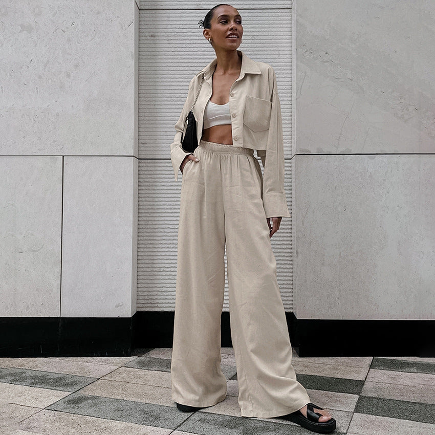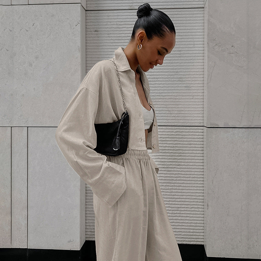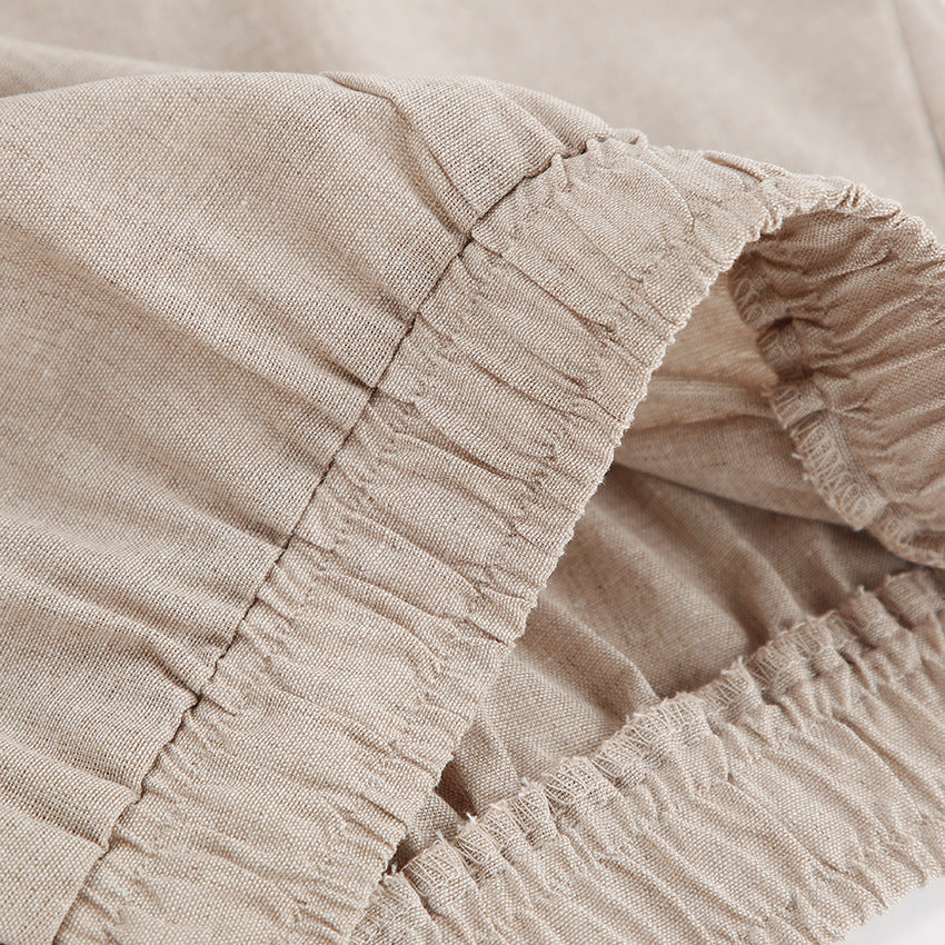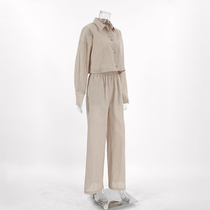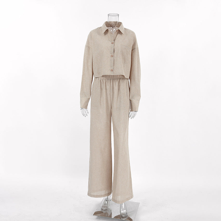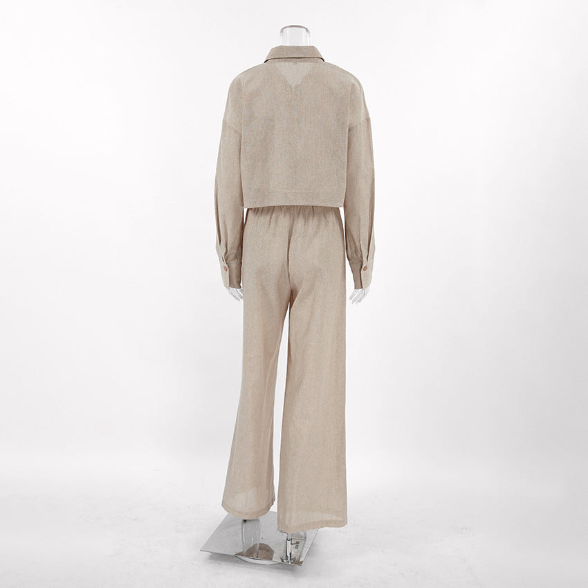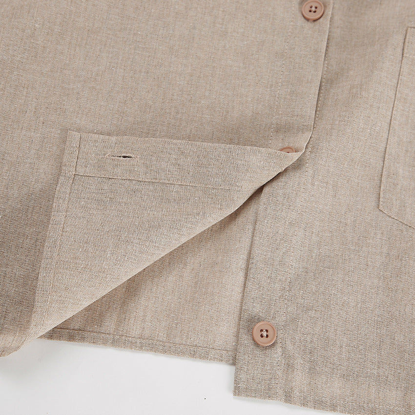 Khaki Long Sleeve Shirt Cotton Linen Two Piece Suit
