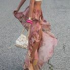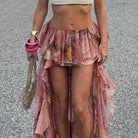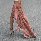 Romantic Floral Print Ruffled Skirt