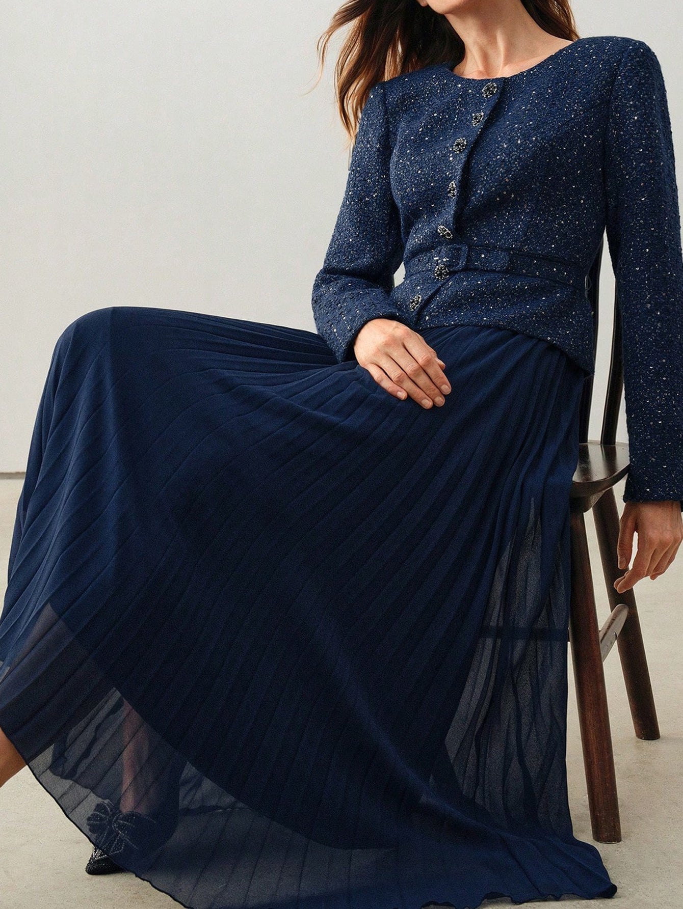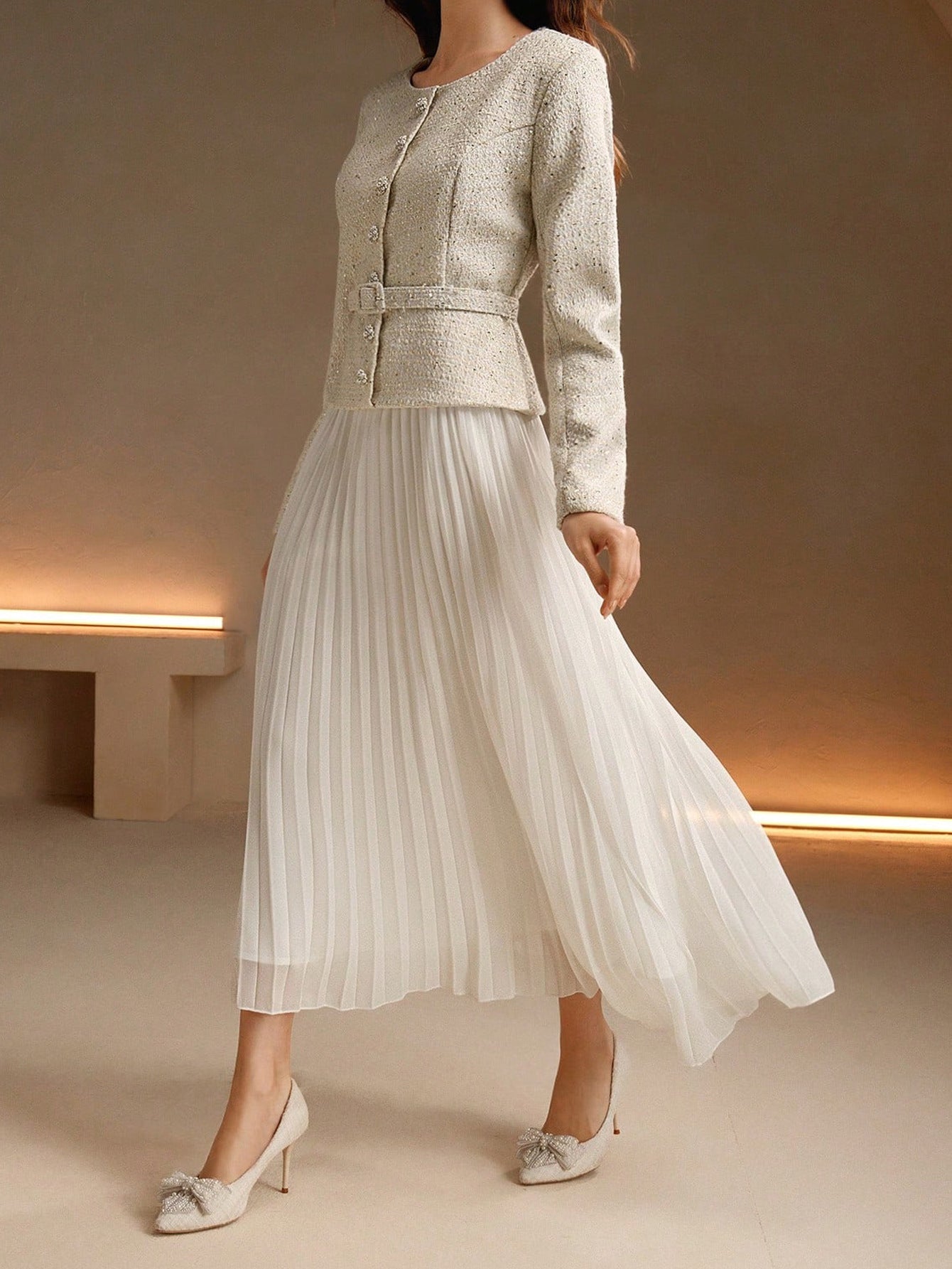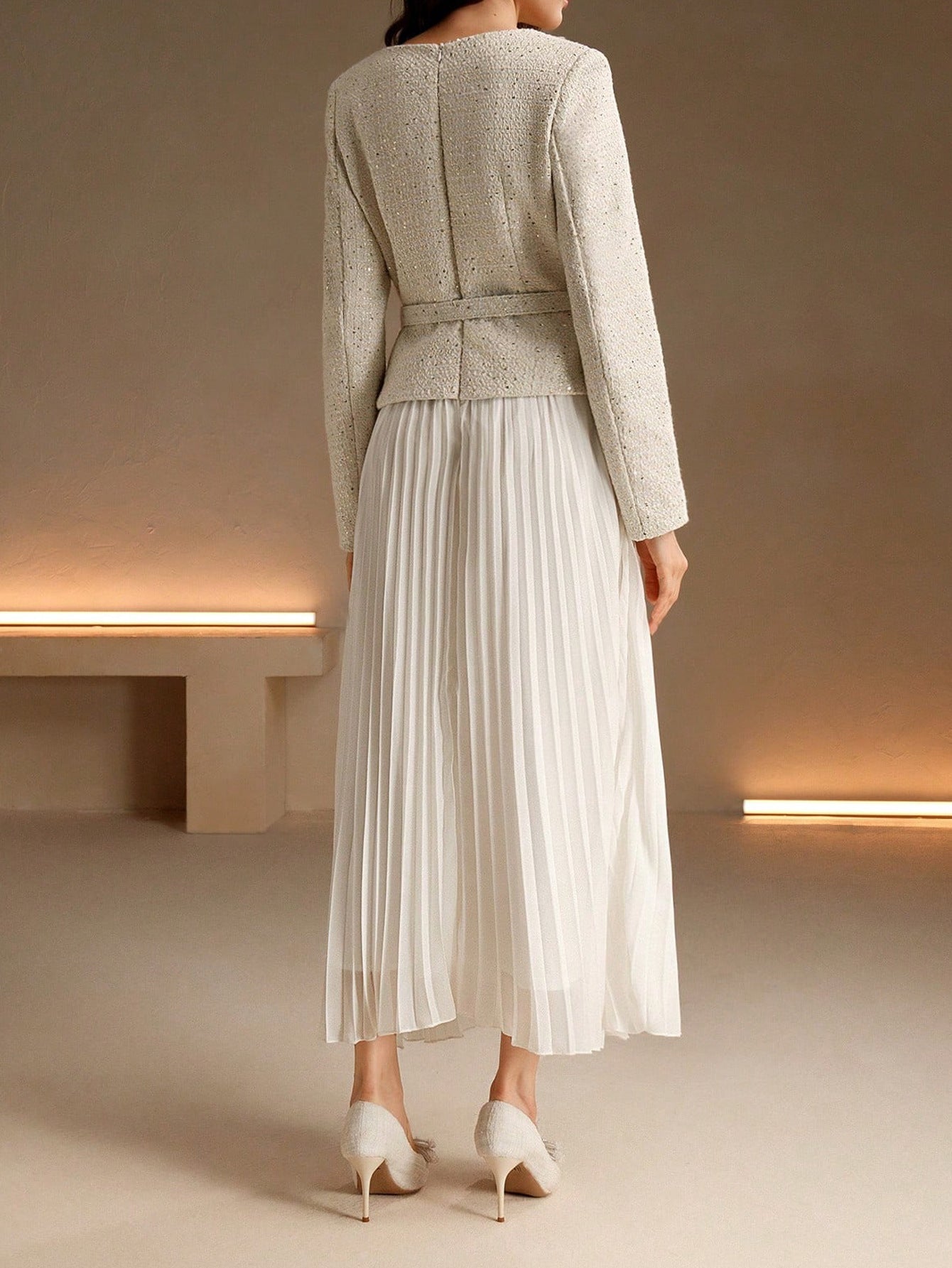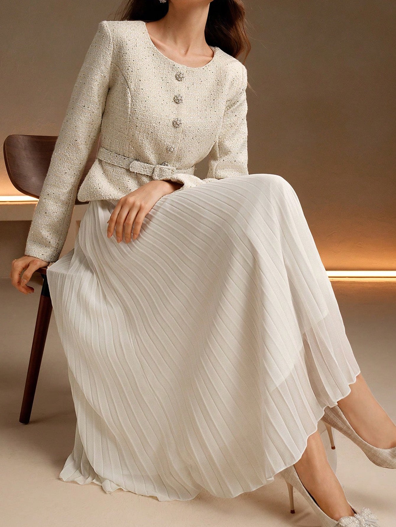 Elegant Pleated Long Sleeved Dress