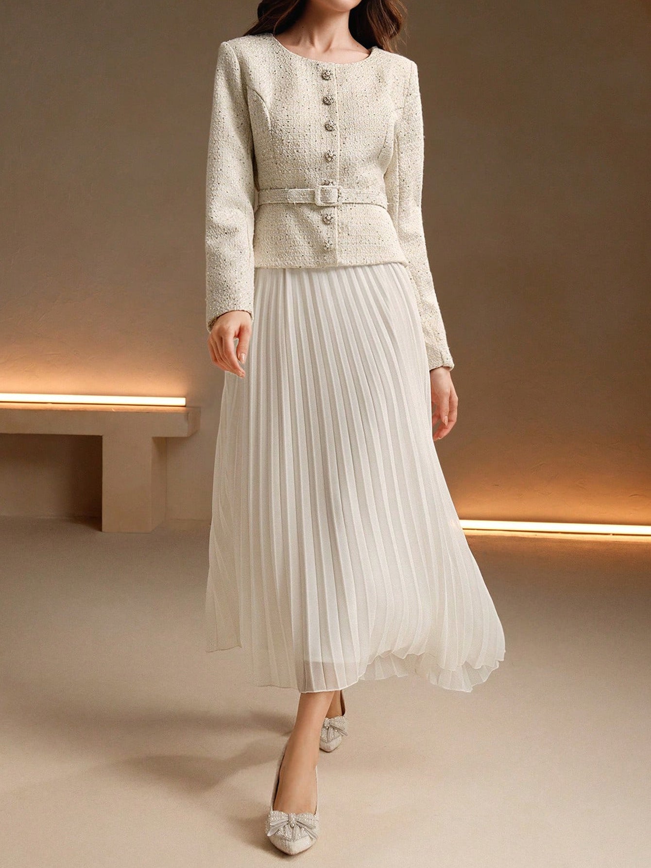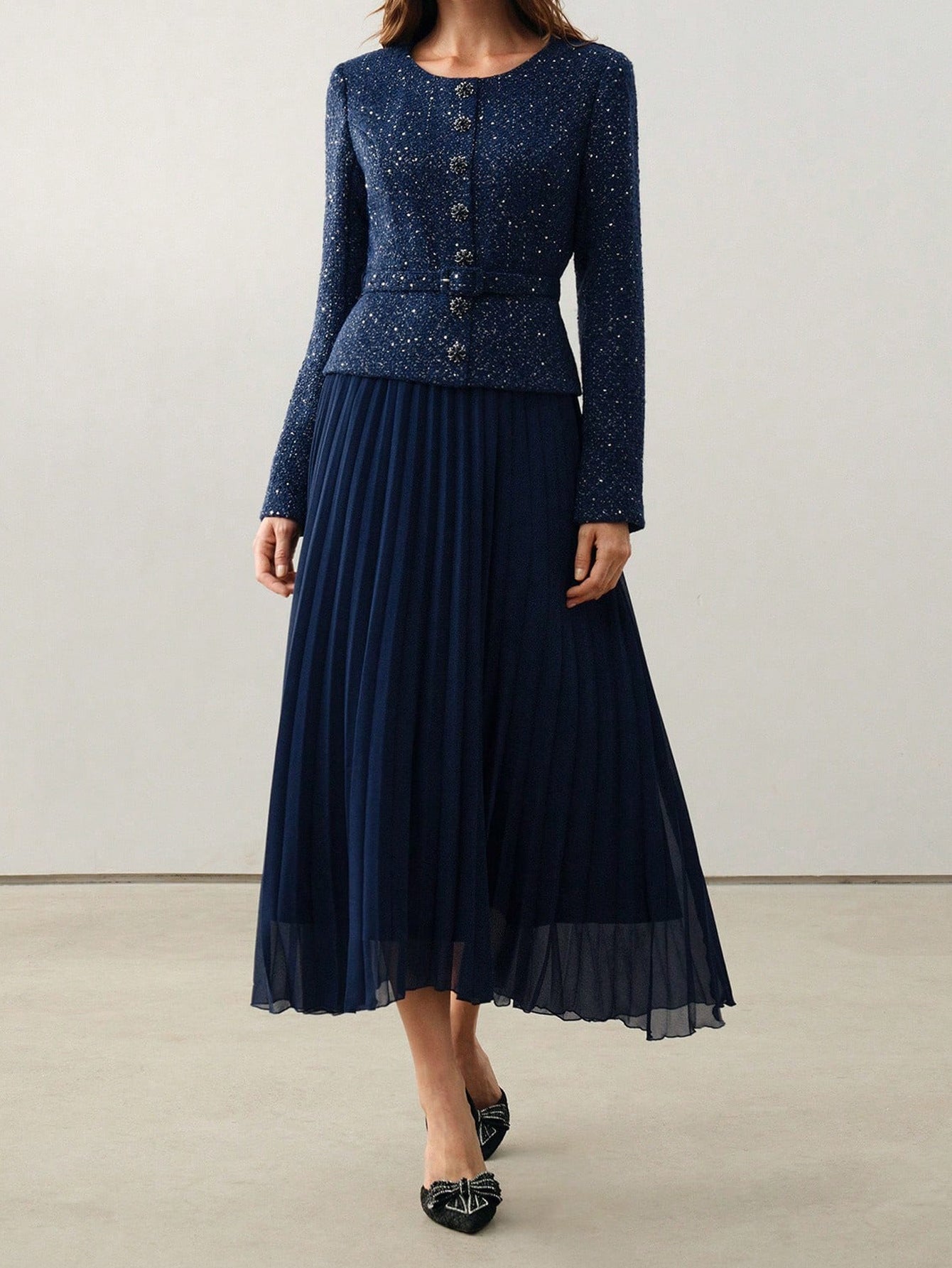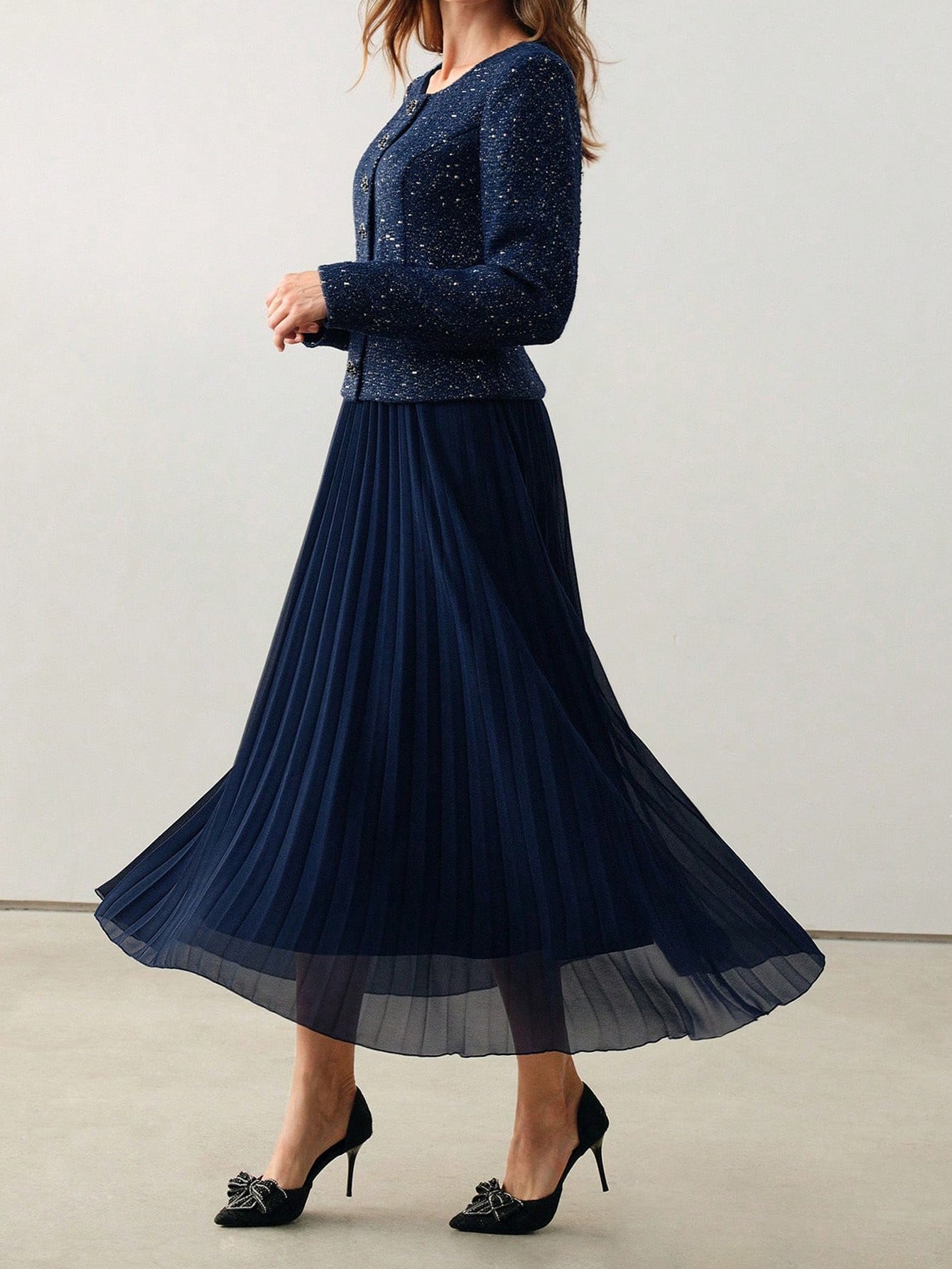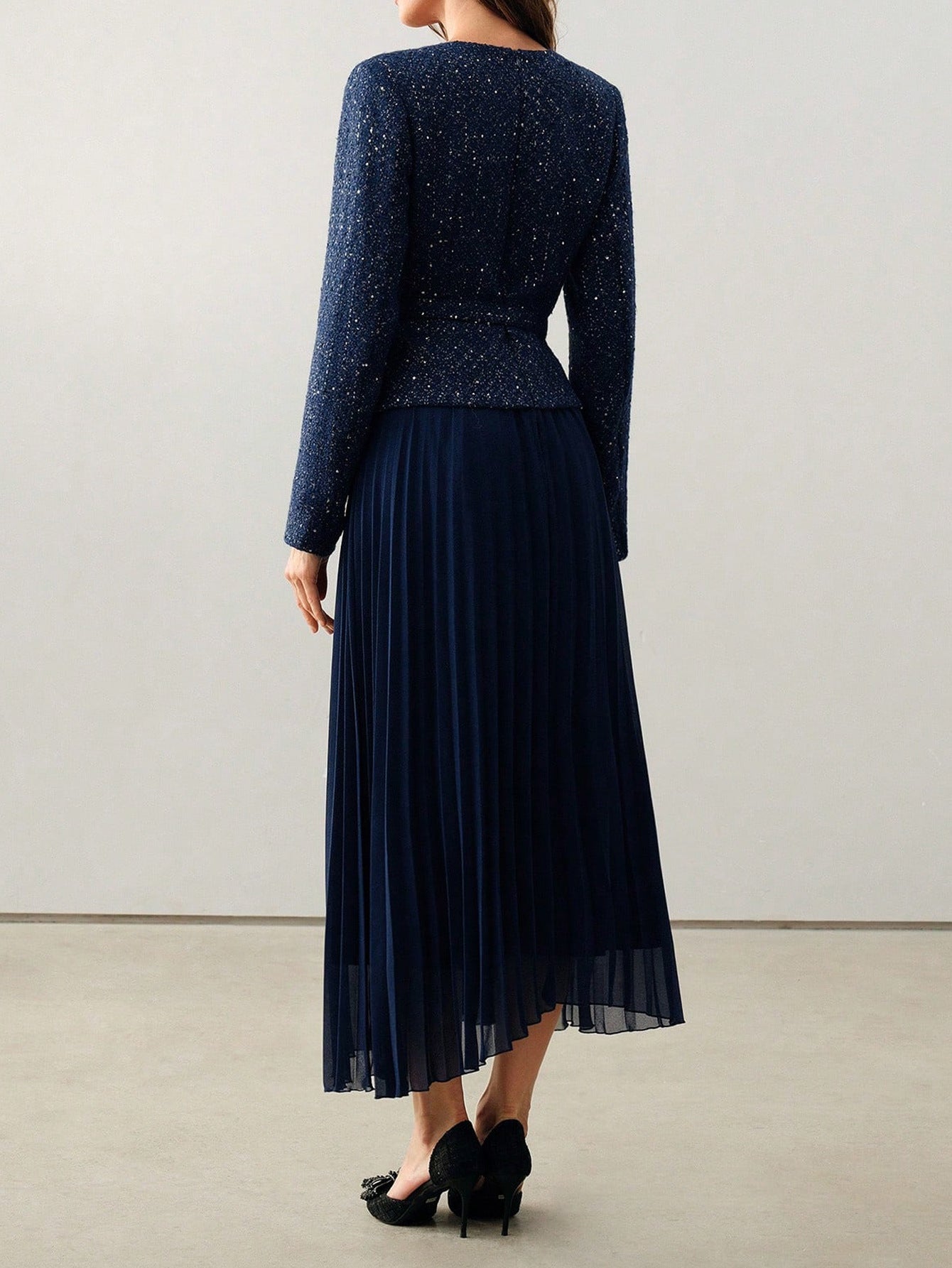 Elegant Pleated Long Sleeved Dress