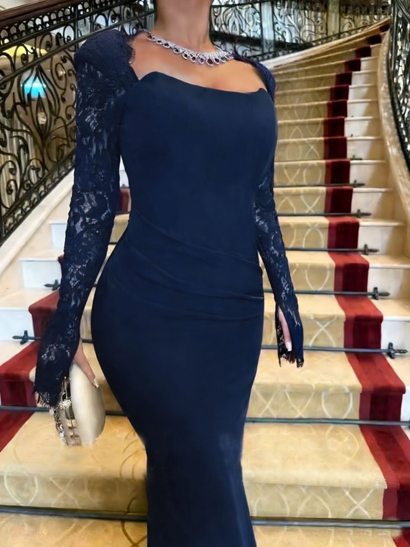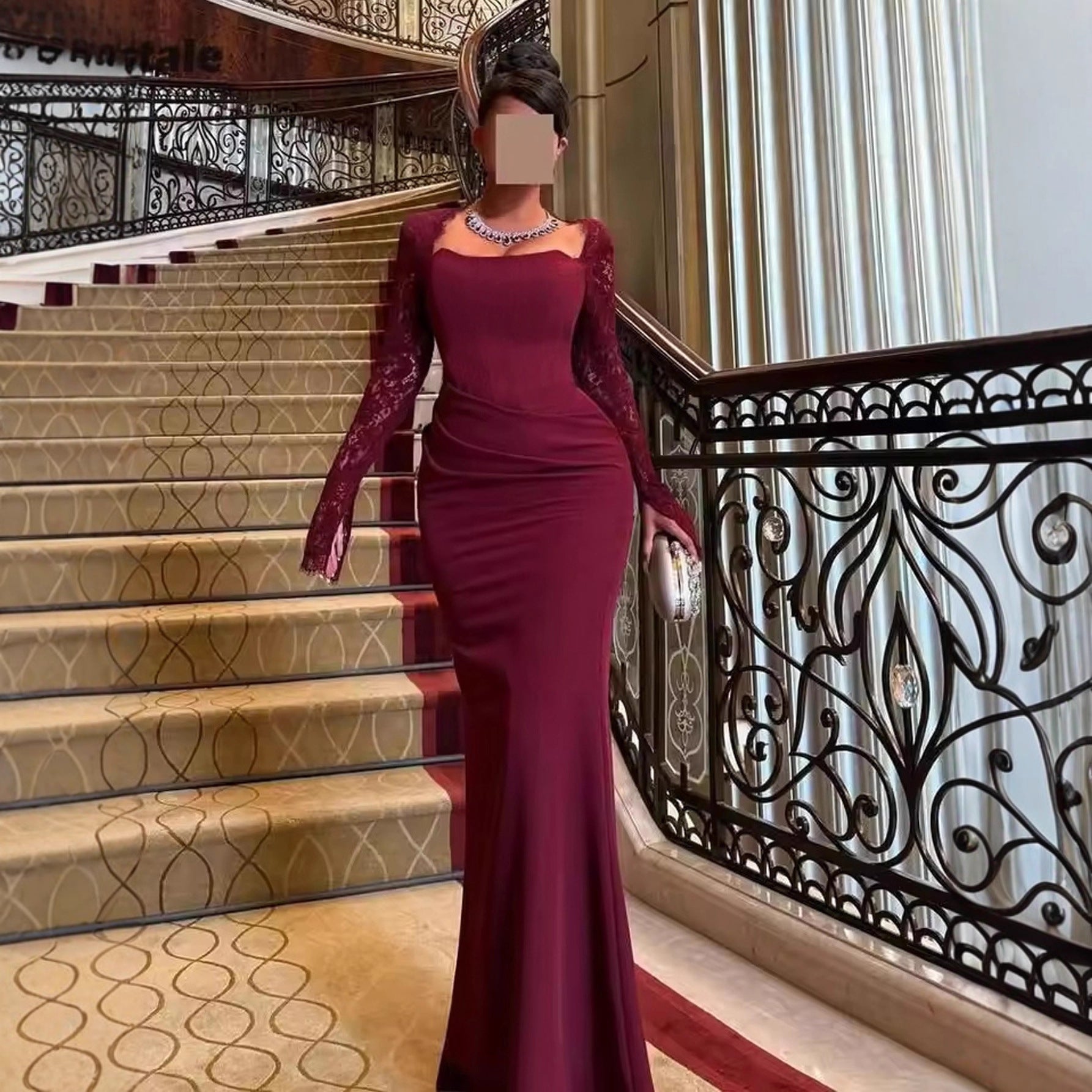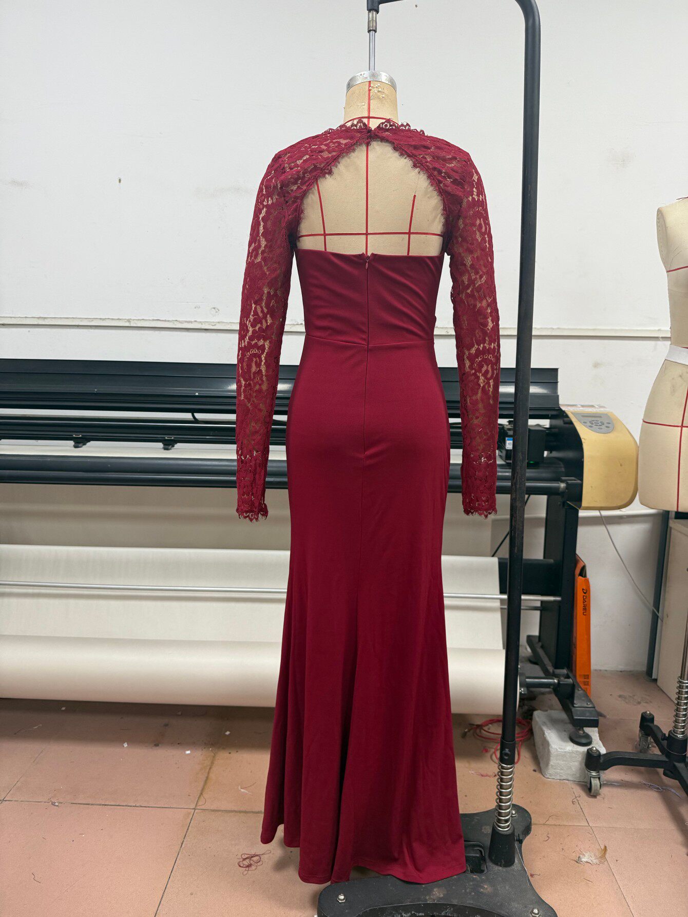 Long Sleeve Lace Red Dress