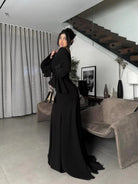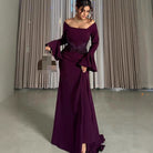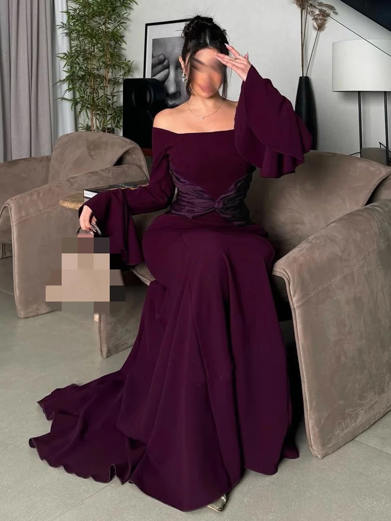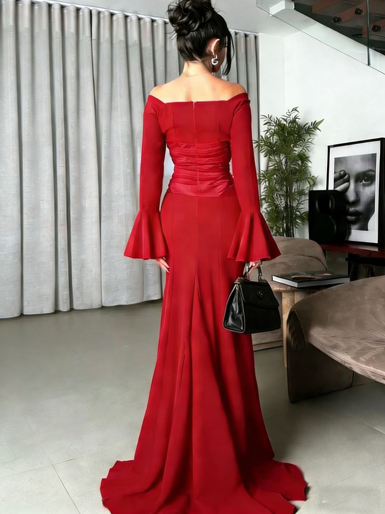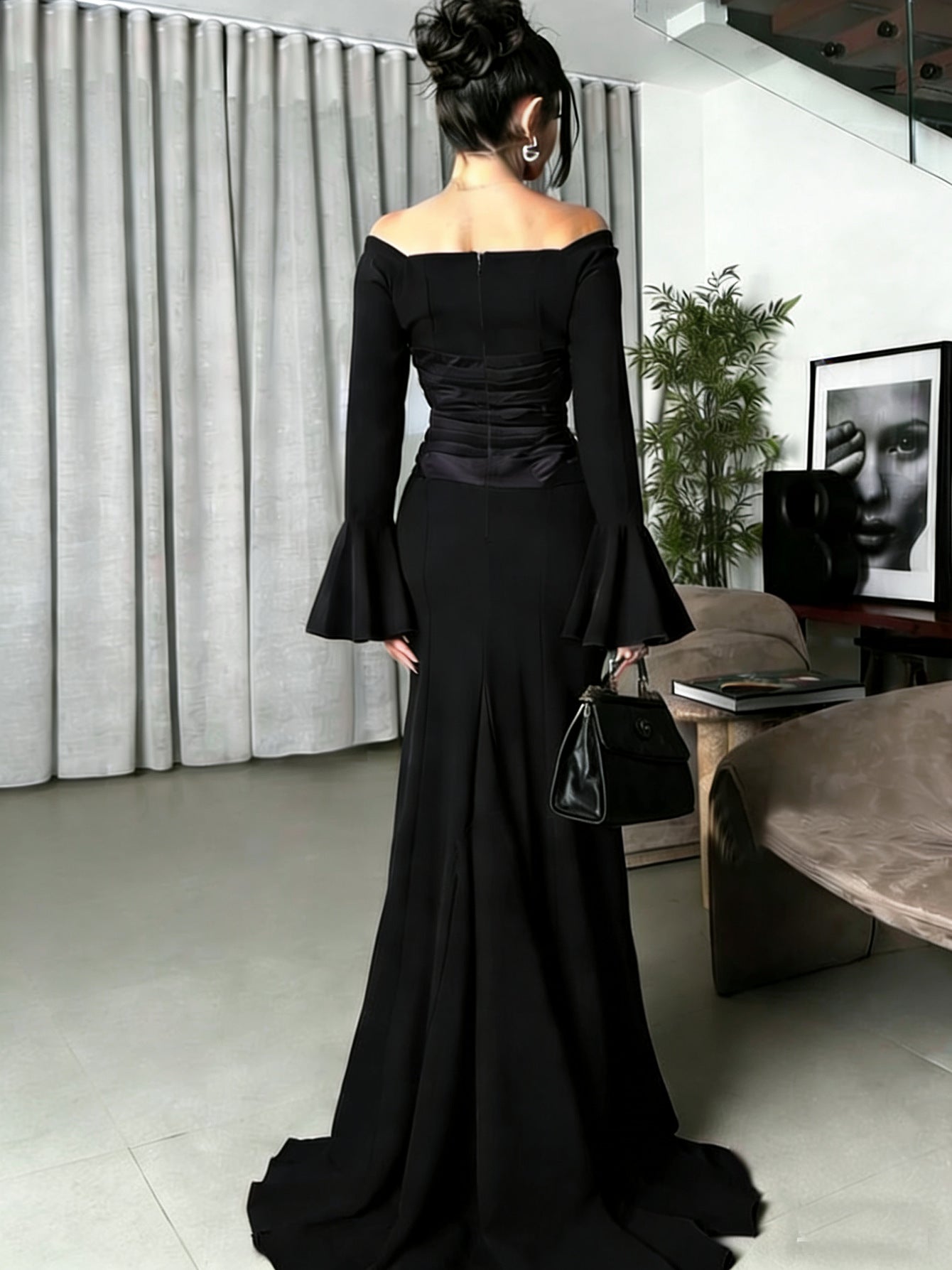 Long Sleeve off Shoulder Stitching Ruffle Slim Dress