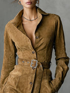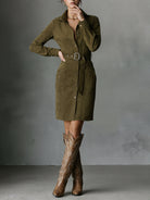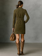 Vintage Collared Waist Tight Mid Length Dress