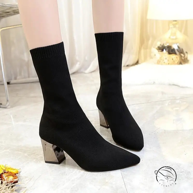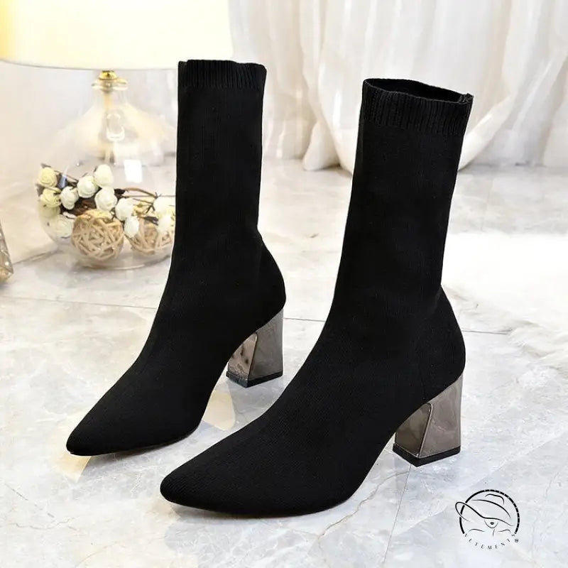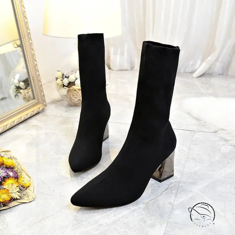 Chunky Heel Knitted Stretch Boots