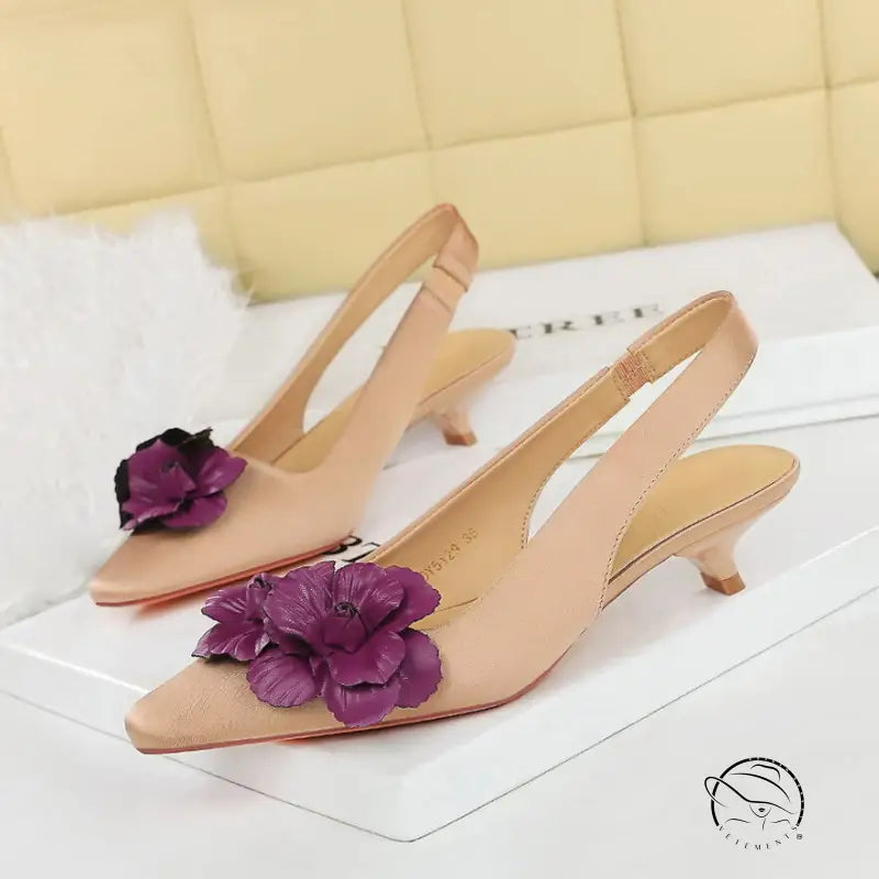 High Grade Floral Pointed Mid Heel Sandals