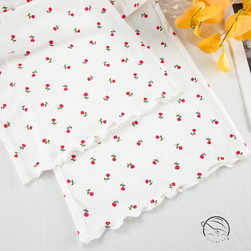 This floral-printed pajama set features a knitted cardigan and long-sleeved trousers designed for comfortable, stylish homewear. Its breathable fabric ensures all-day relaxation with effortless elegance.