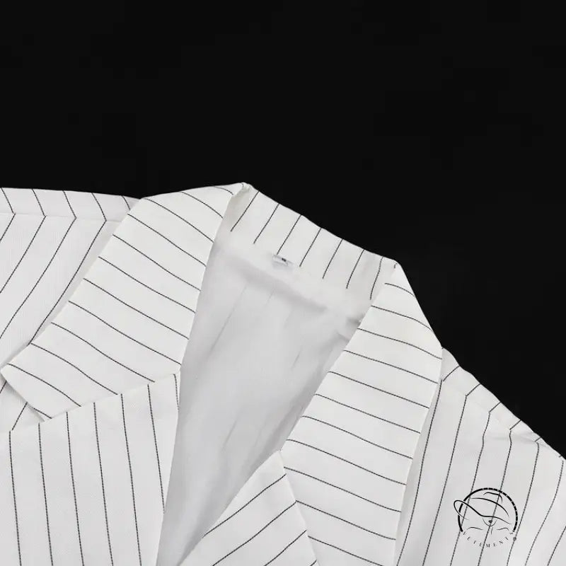 This two-piece set features an elegant striped top paired with wide-leg pants, offering a polished and comfortable office look. Perfect for professional settings with a modern, refined style.