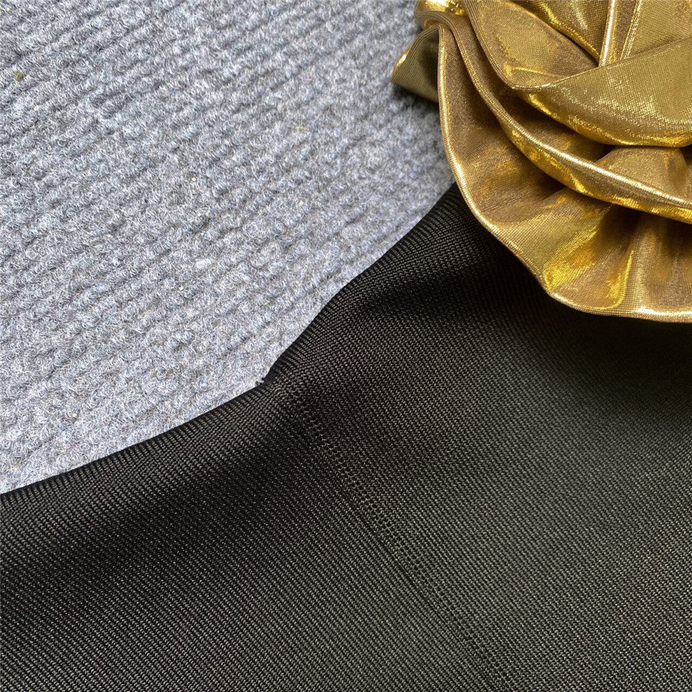 Design Three Dimensional Golden Floral Shoulder Sleeveless Bandage One Piece Dress Party Dinner Dress
