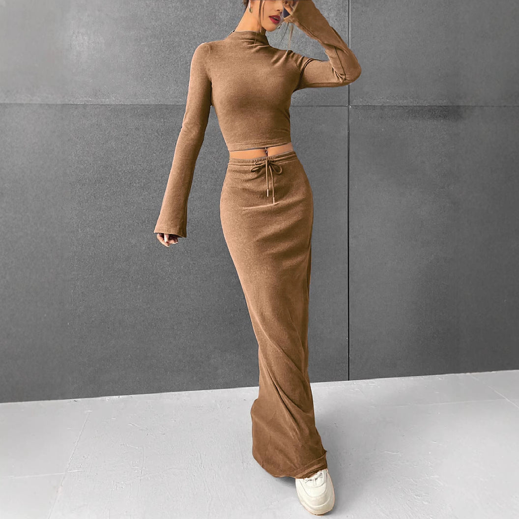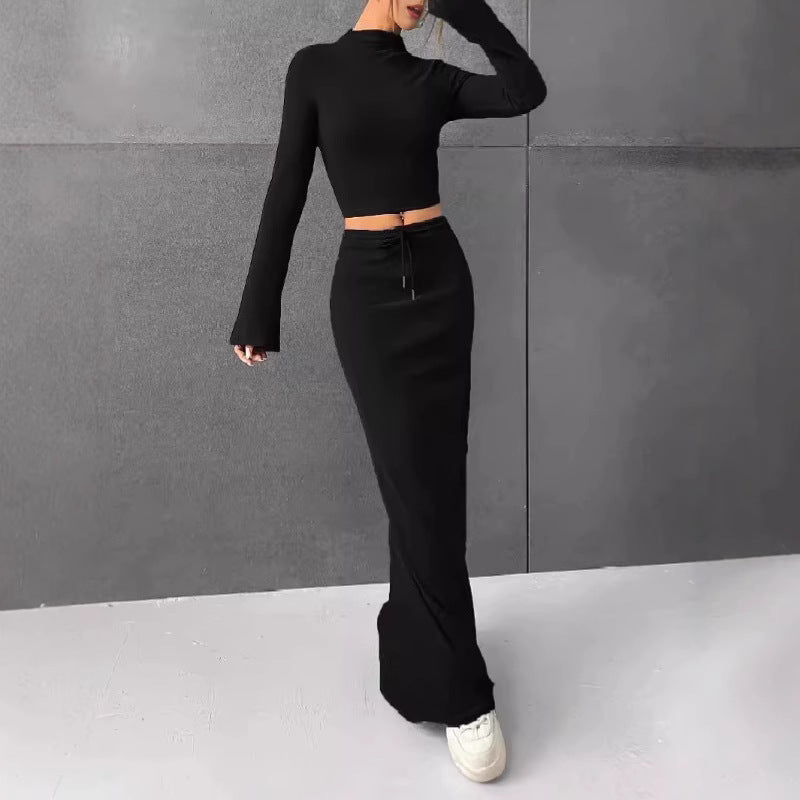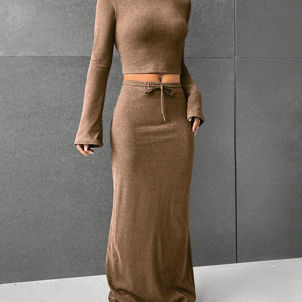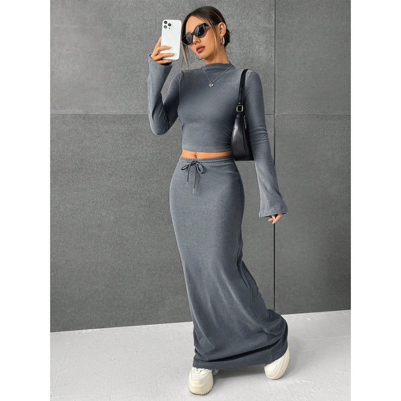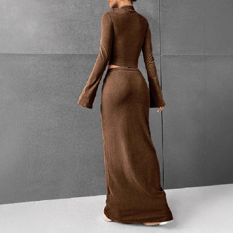 Elegant Solid Color Trousers Long Sleeve Two Pieces Set
