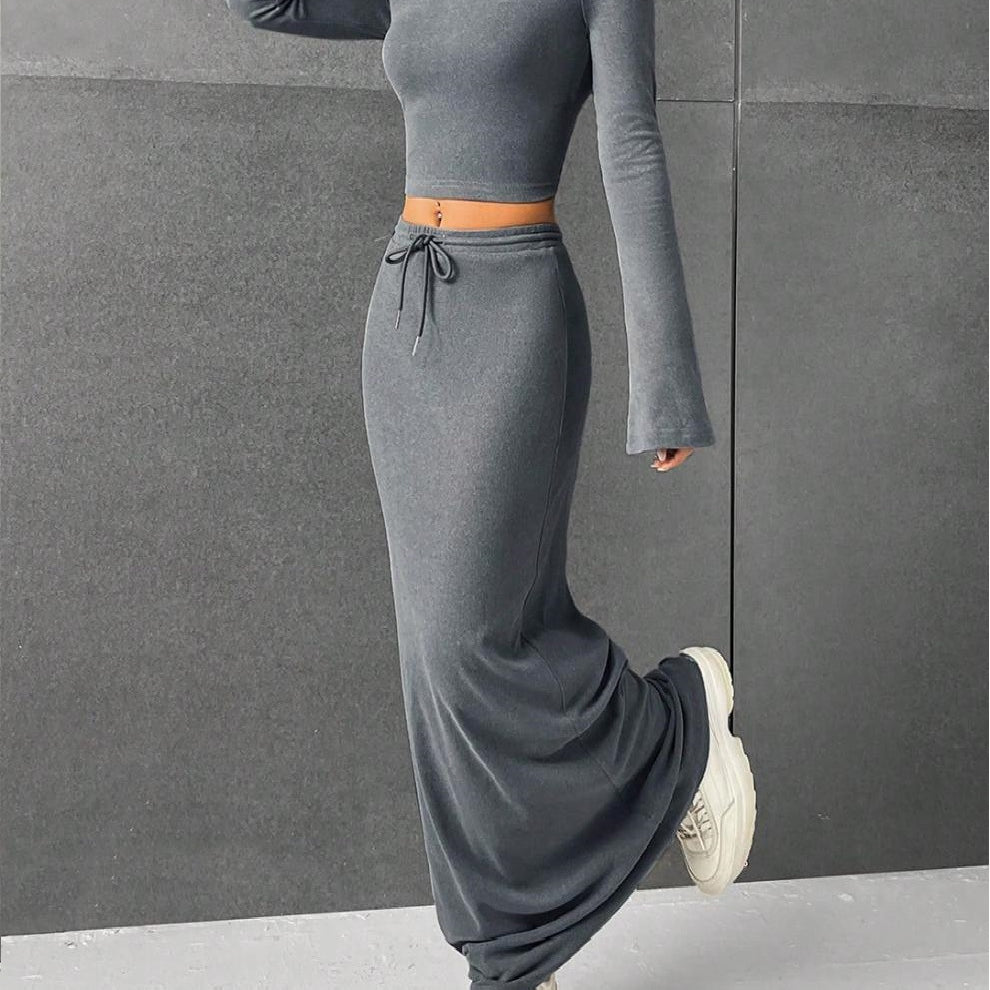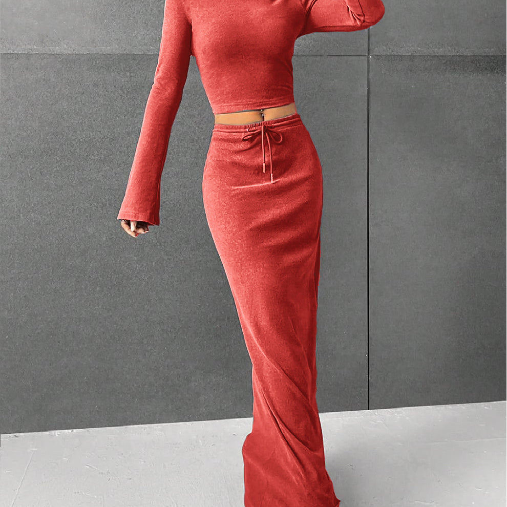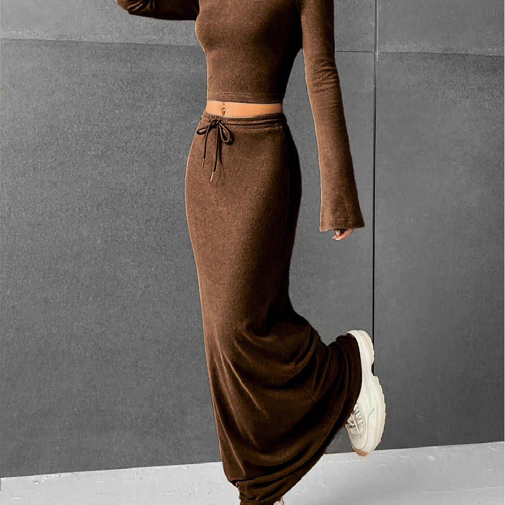 Elegant Solid Color Trousers Long Sleeve Two Pieces Set
