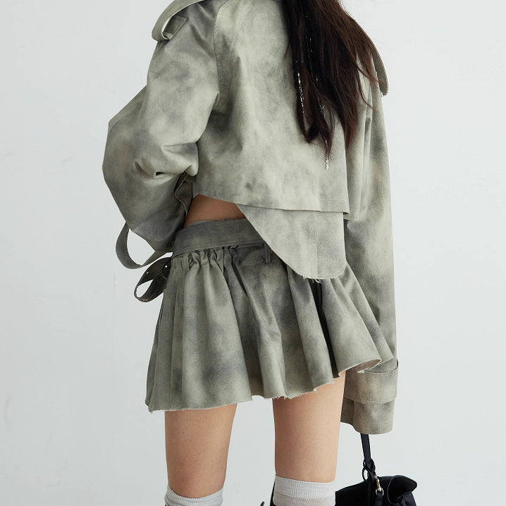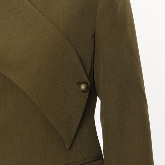 Fashionable beige jacket with black ruffled skirt from French Design Short Shirt Jacket collection