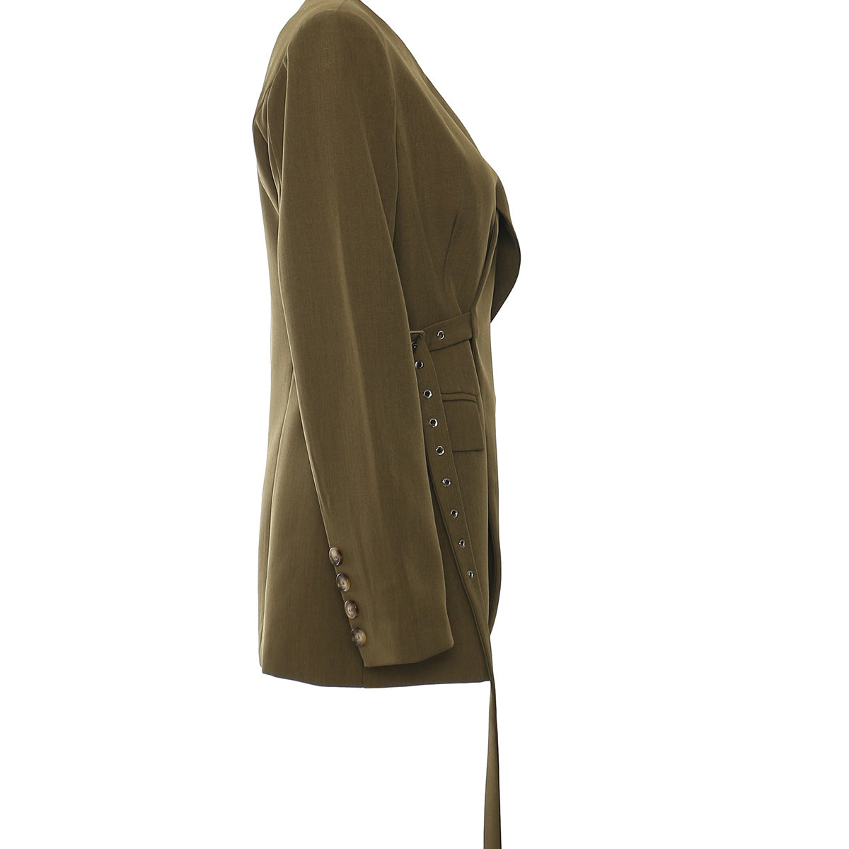Brown blazer with black belt from the Langry Double Belt Deconstruction Blazer Tops collection