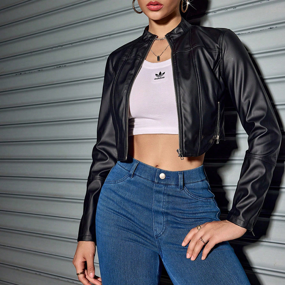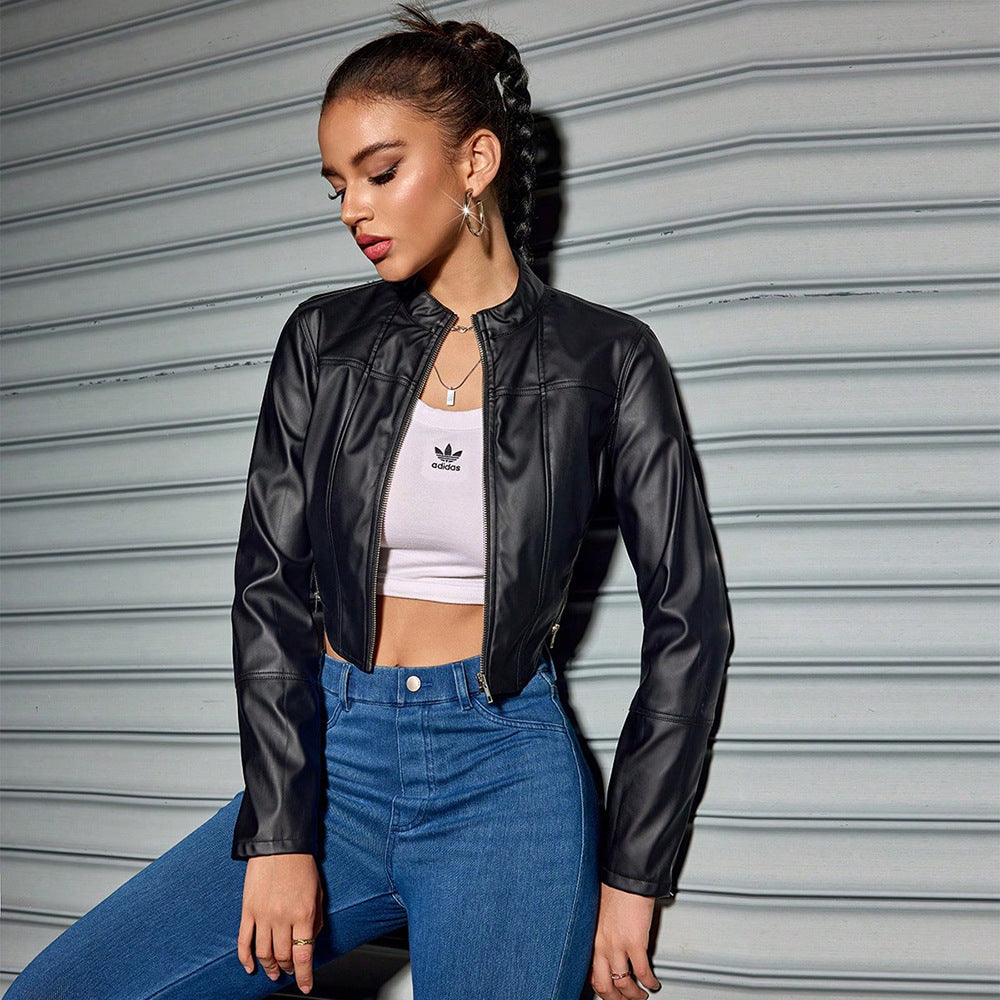 Fall Women Clothing Punk Hipster Street Slim Stand Collar Zip Long Sleeve Coat Women