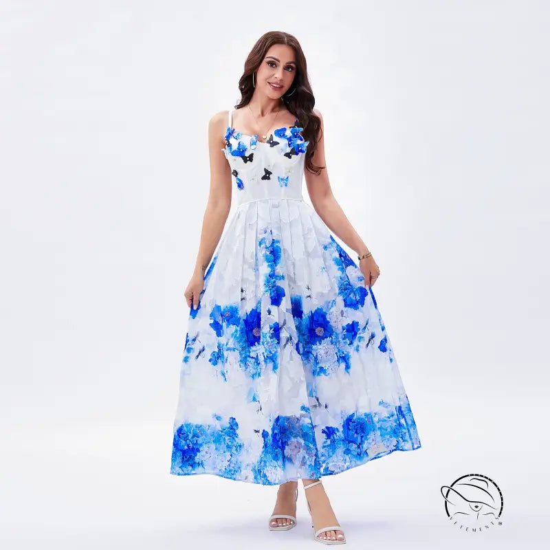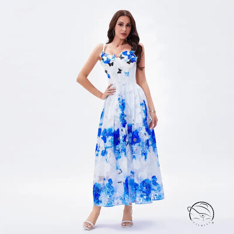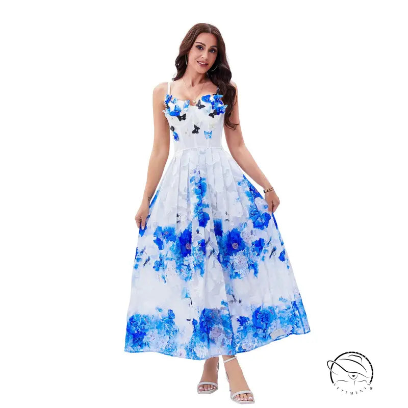 Beauty Back Underwear One Piece Boning Corset Dress Three Dimensional Butterfly Diamond Slimming Spaghetti Strap Floral Print A line Elegant Large Swing